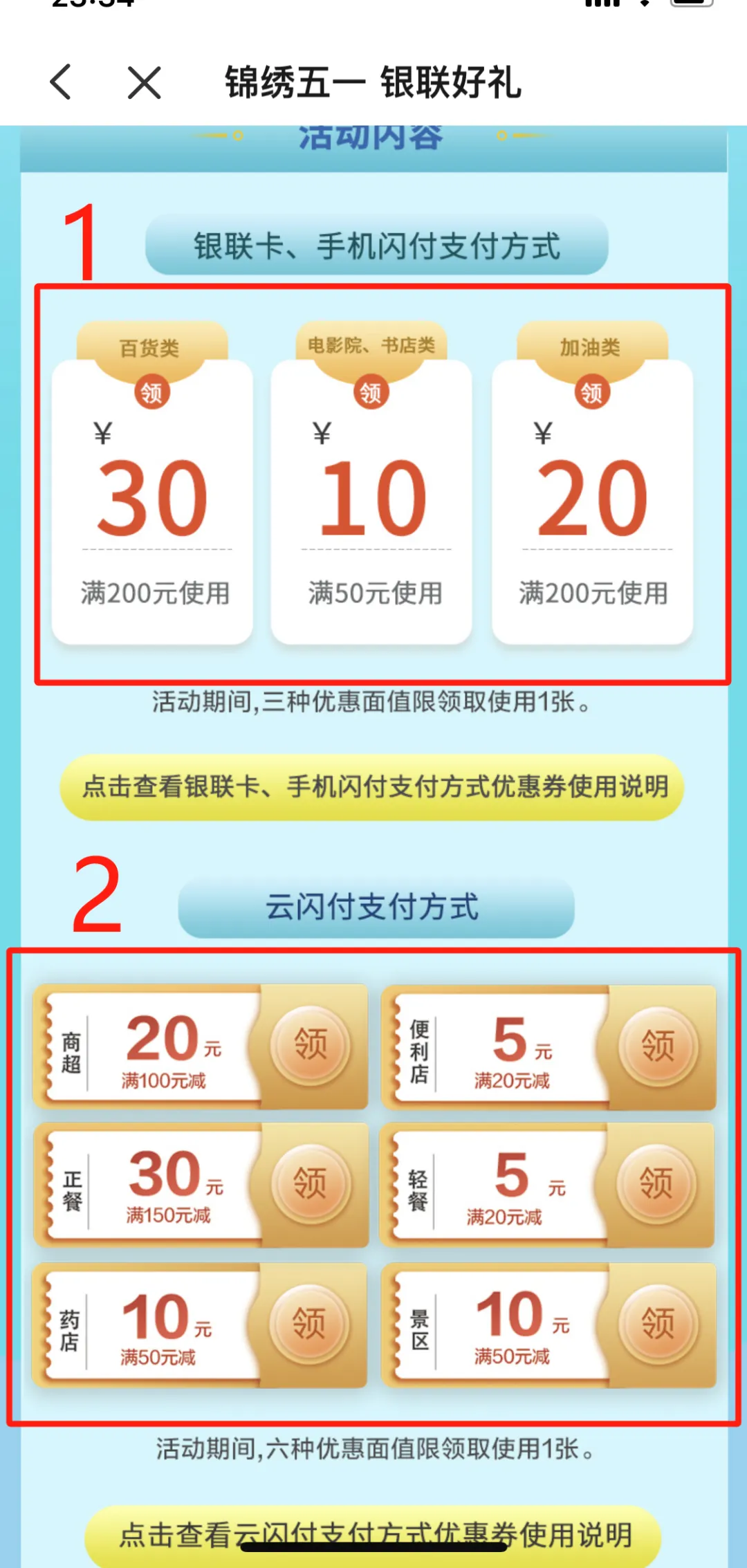 第1个活动:银联卡、手机闪付支付方式优惠券使用说明