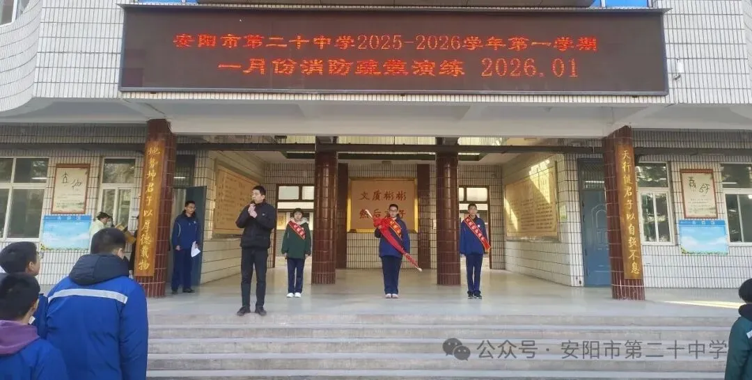 为增强师生安全意识,筑牢校园安全防线,安阳市第二十中学于1月12日上午,组织开展“安全第一课”应急疏散演练活动,九年级师生共同参与,以实战演练提高应急避险能力。