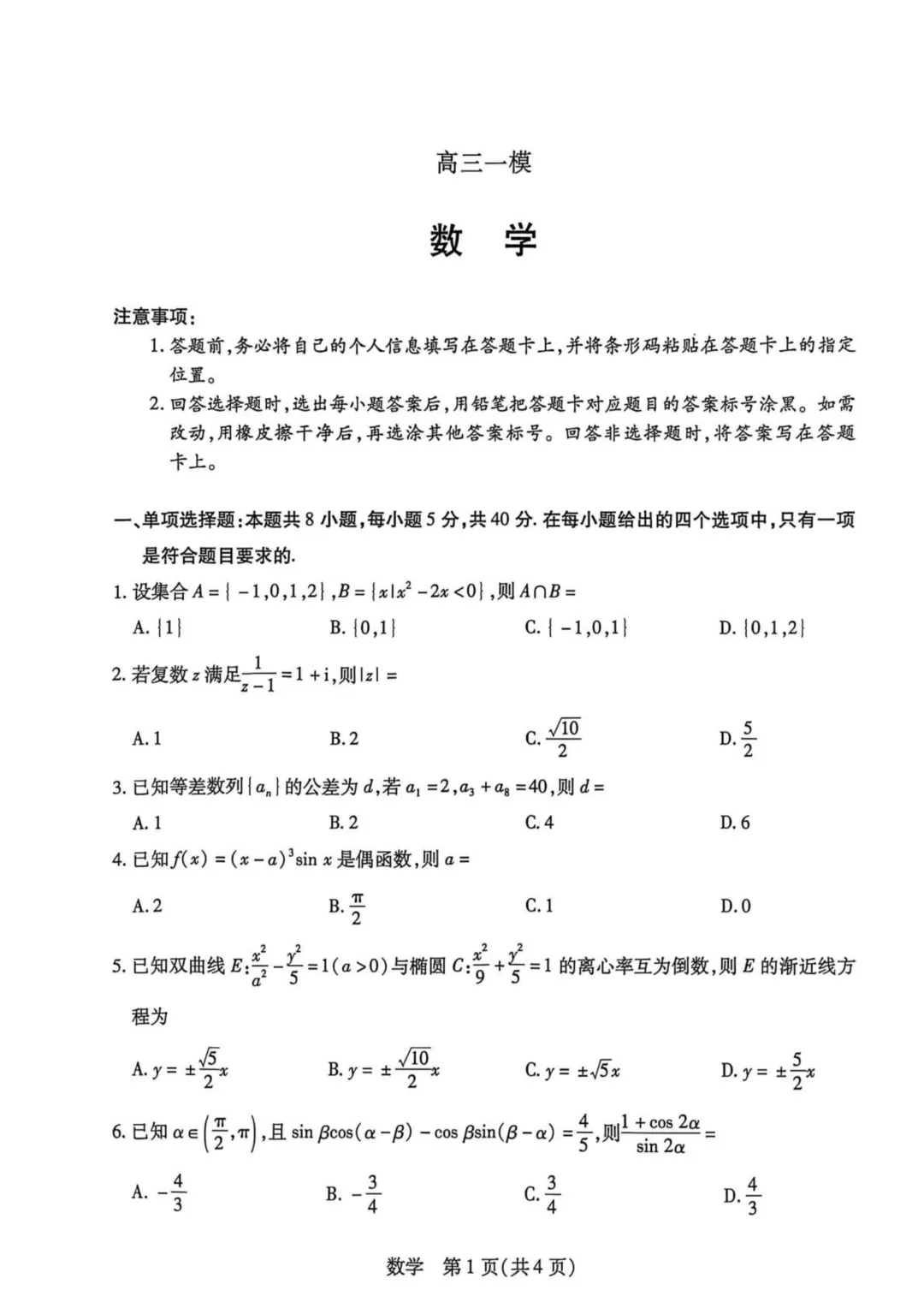 电子版试题及其答案: