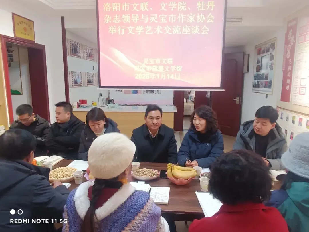 会上,与会人员共同观看了黛馨文学馆专题片。随后,伍丹代表灵宝市文联致欢迎词,并详细介绍了灵宝市文联下属各协会的发展概况;陈鋆宝分享了洛阳市文联的基本情况,以及近年来开展文学交流合作的经验成果;王小朋围绕洛阳市文学院的建设概况、《牡丹》杂志的办刊特色展开交流;余子愚则针对《牡丹》杂志的栏目设置、投稿规范,以及文学创作的技巧与方向进行了细致分享。与会嘉宾围绕两地深厚的文化底蕴、文学创作的思路方法、文艺事业的发展路径等话题,展开了深入探讨与热烈交流。