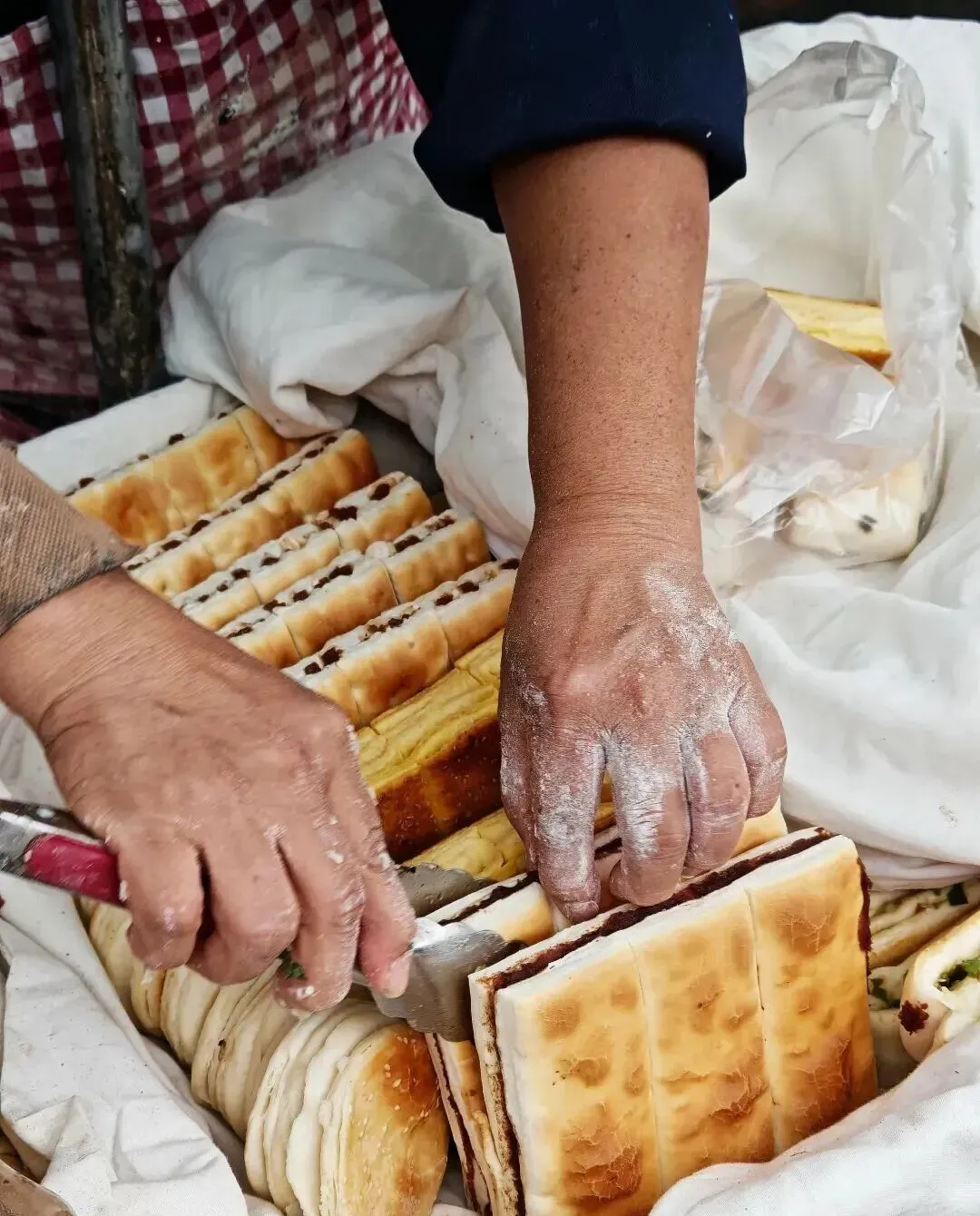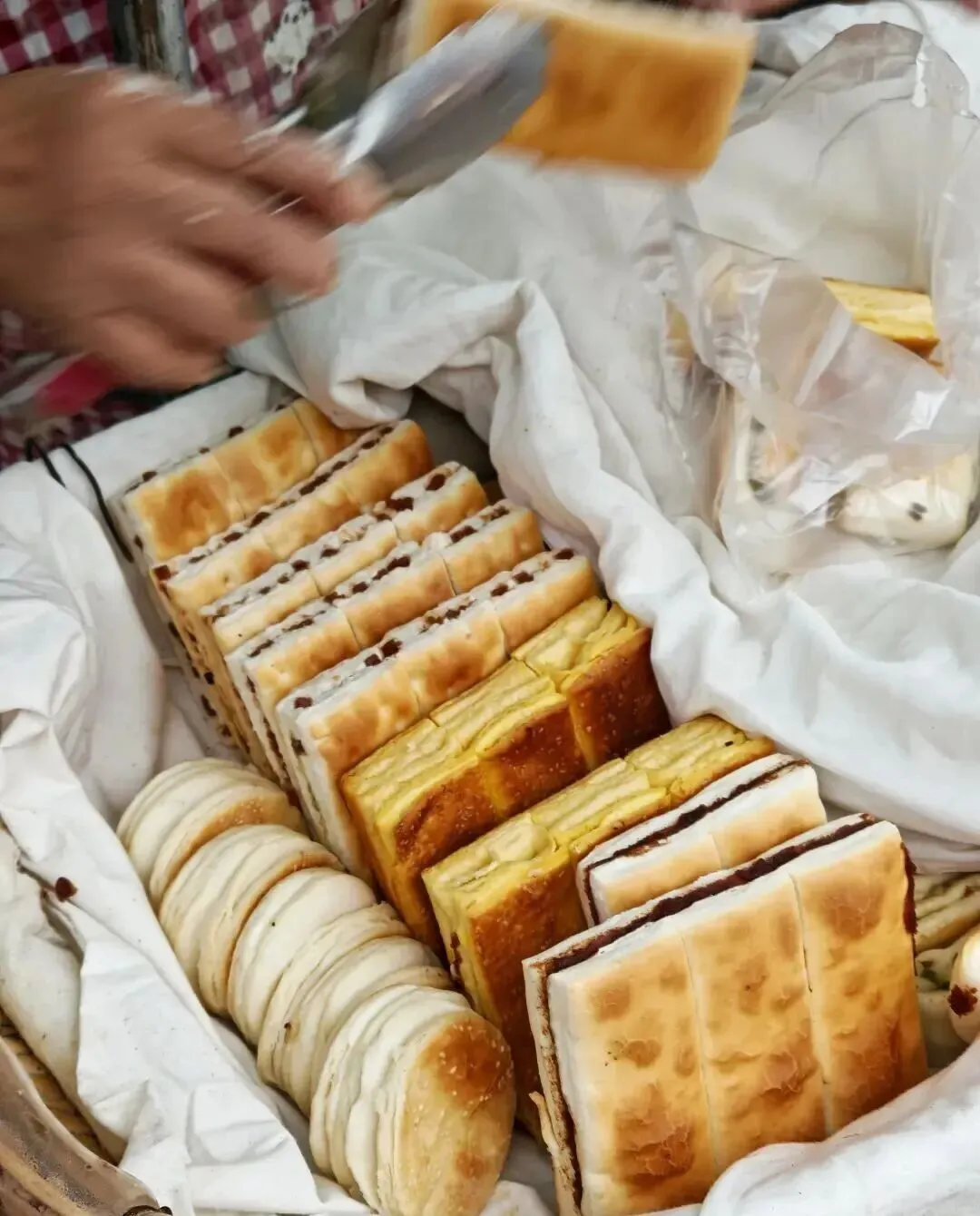 说实话我也没想到 , 就是去买个菜的事儿 , 结果在聚端农贸市场里面转悠 , 一眼就瞅见了这个香酥饼。