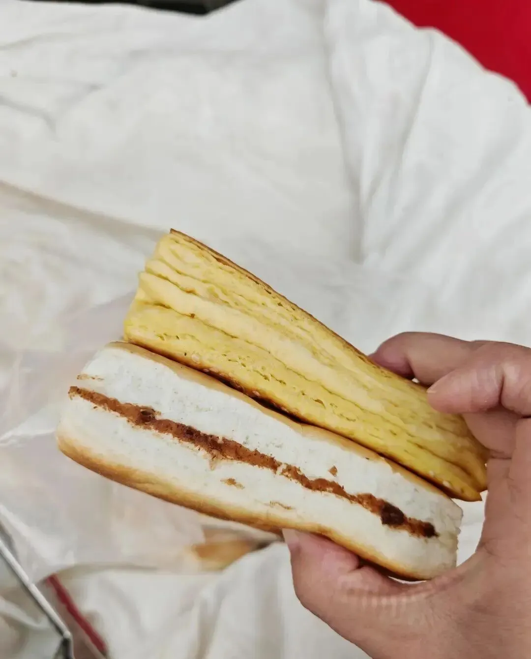 小时候真的经常吃这个 , 那会儿放学路上买一个 , 边走边啃 , 外面那层酥皮掉得到处都是 , 但就是停不下来。