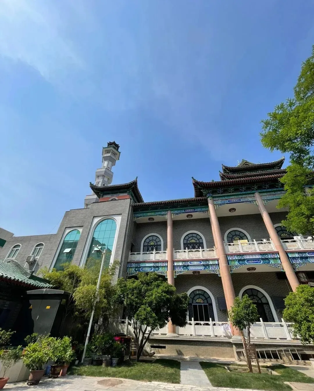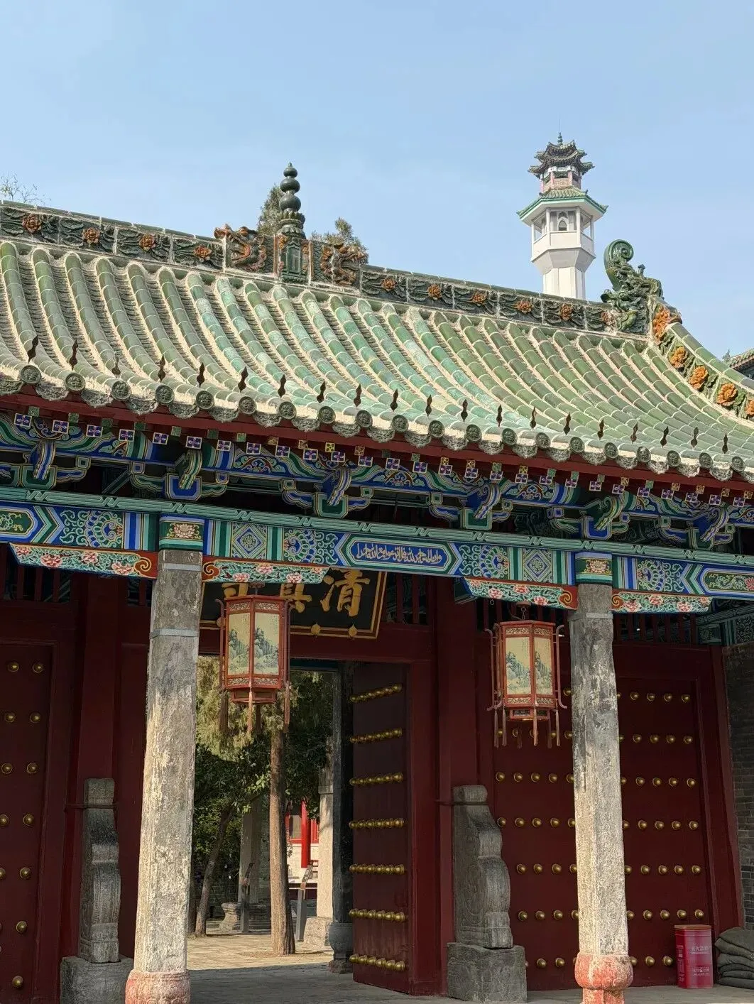 宣礼塔作为寺内最高的建筑,它可是老辈人的扩音神器,过去没有扩音器,宣理员得登上塔顶读 “宣理词”,呼唤周边人来礼拜,想想就超有画面感。