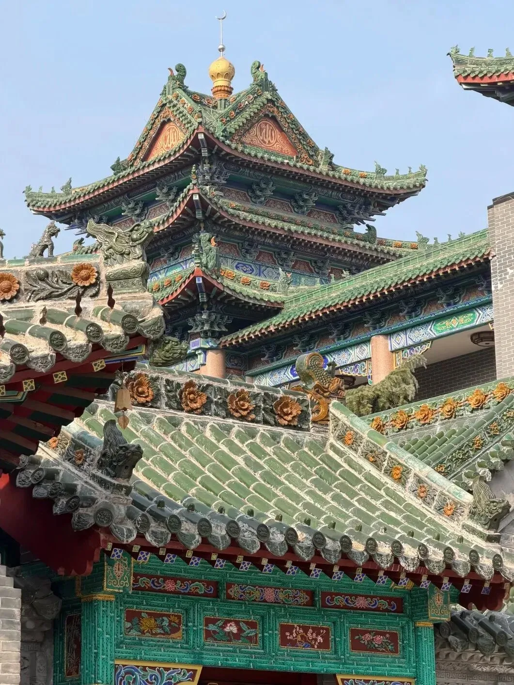 砖雕上繁复的缠枝纹,木檐下细腻的莲花刻,每一道纹路都如历史的低语,既诉说着信仰的庄严,也凝固着工匠手下流淌的时光。