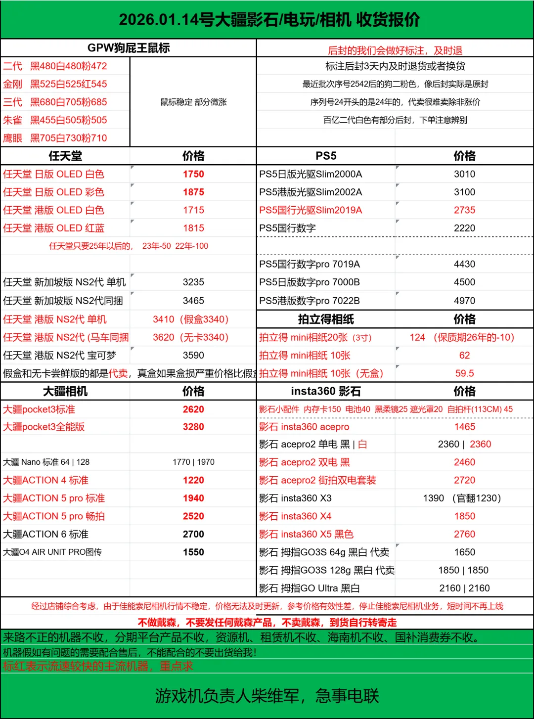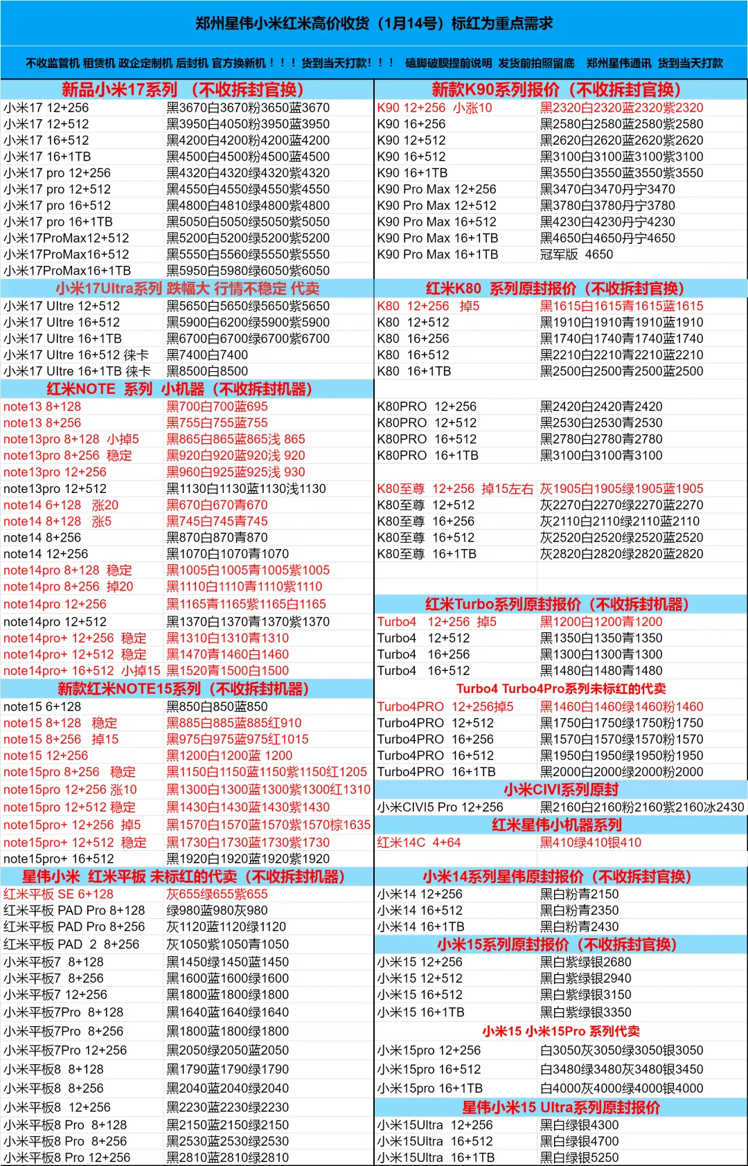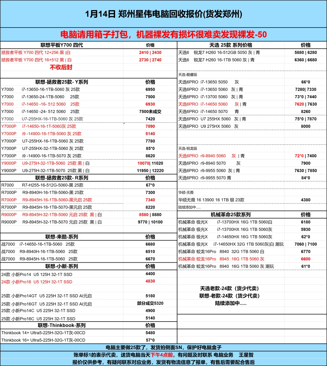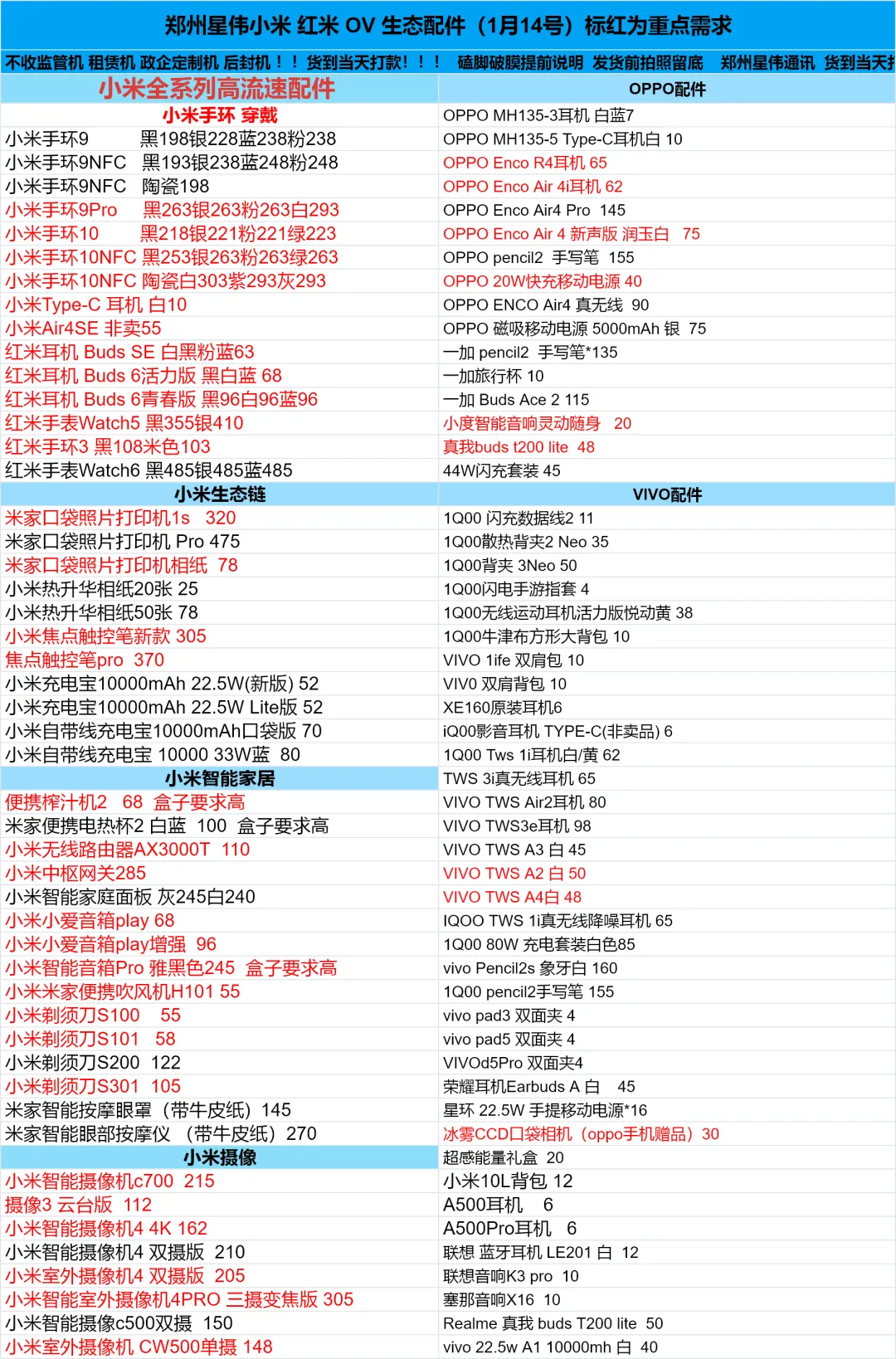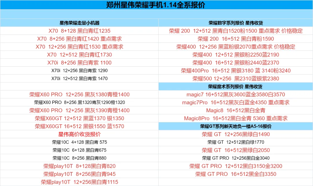 郑州轮聚通讯 2026年1.14日数码报价更新