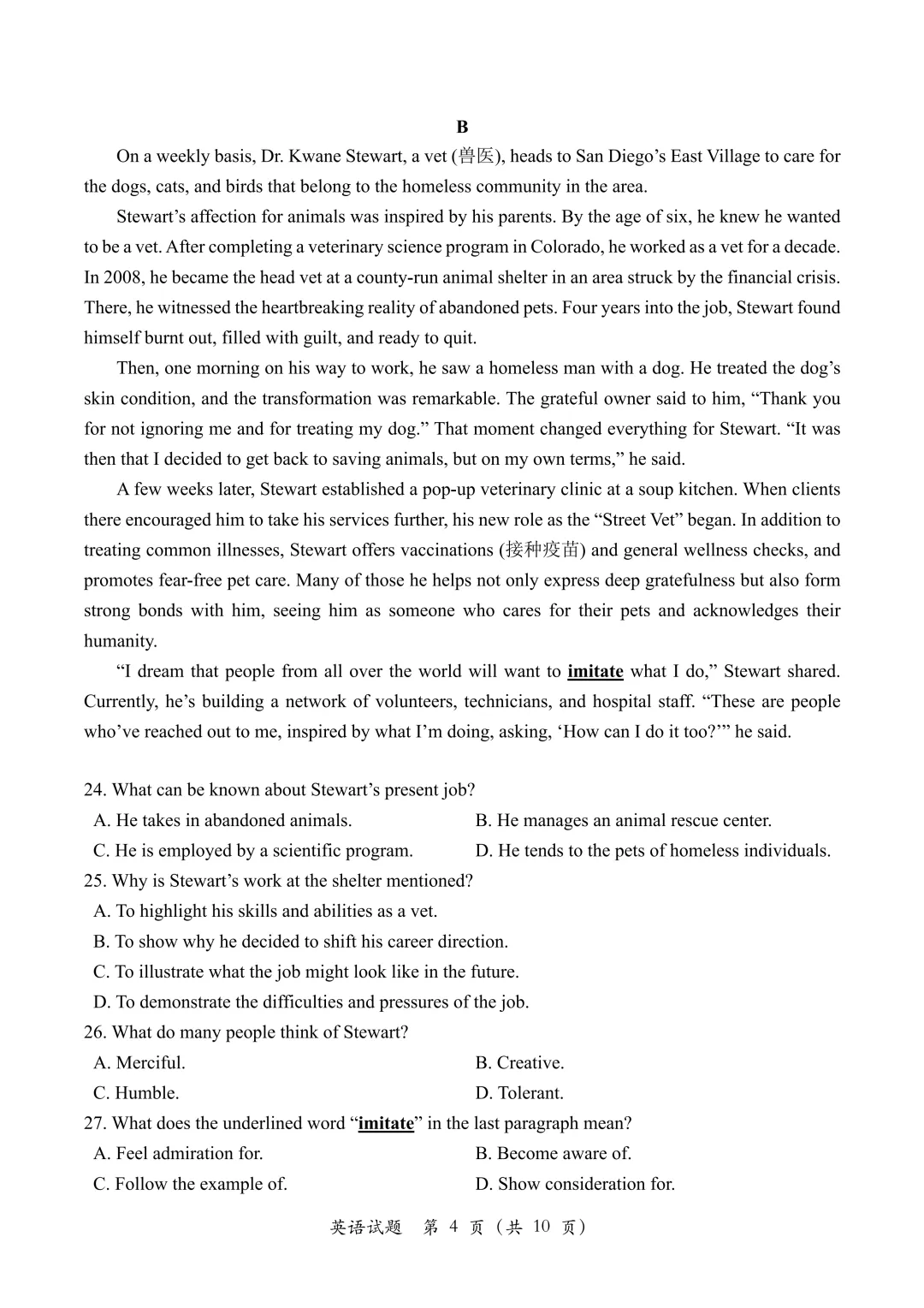 【2026模拟题】34. 广西高三8月适应性联合测试英语试题+答案