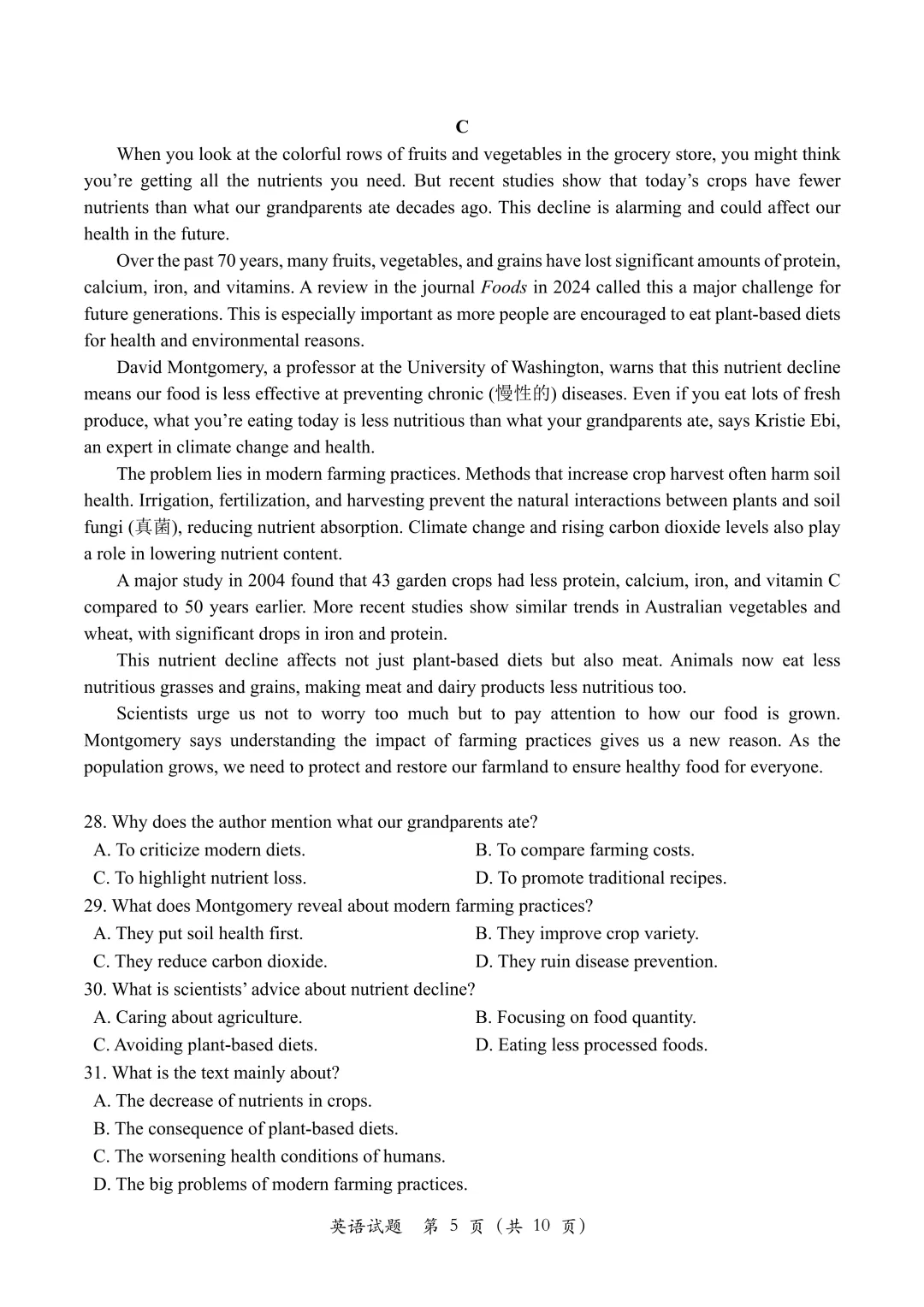 【2026模拟题】82. 重庆市南开中学高三第二次质量检测英语试题+答案