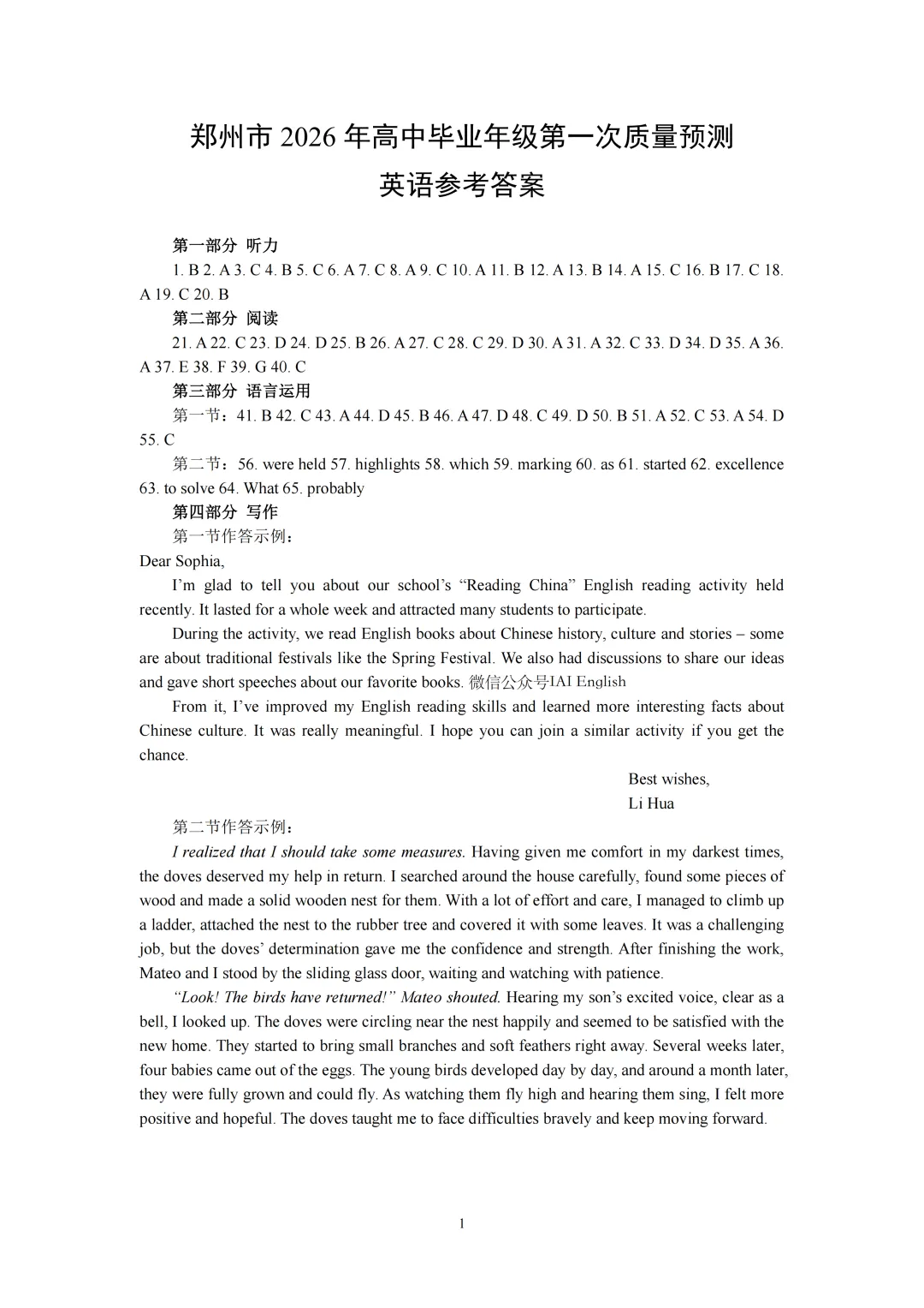 【2026模拟题】361. 郑州市高三第一次质量预测英语试题+答案