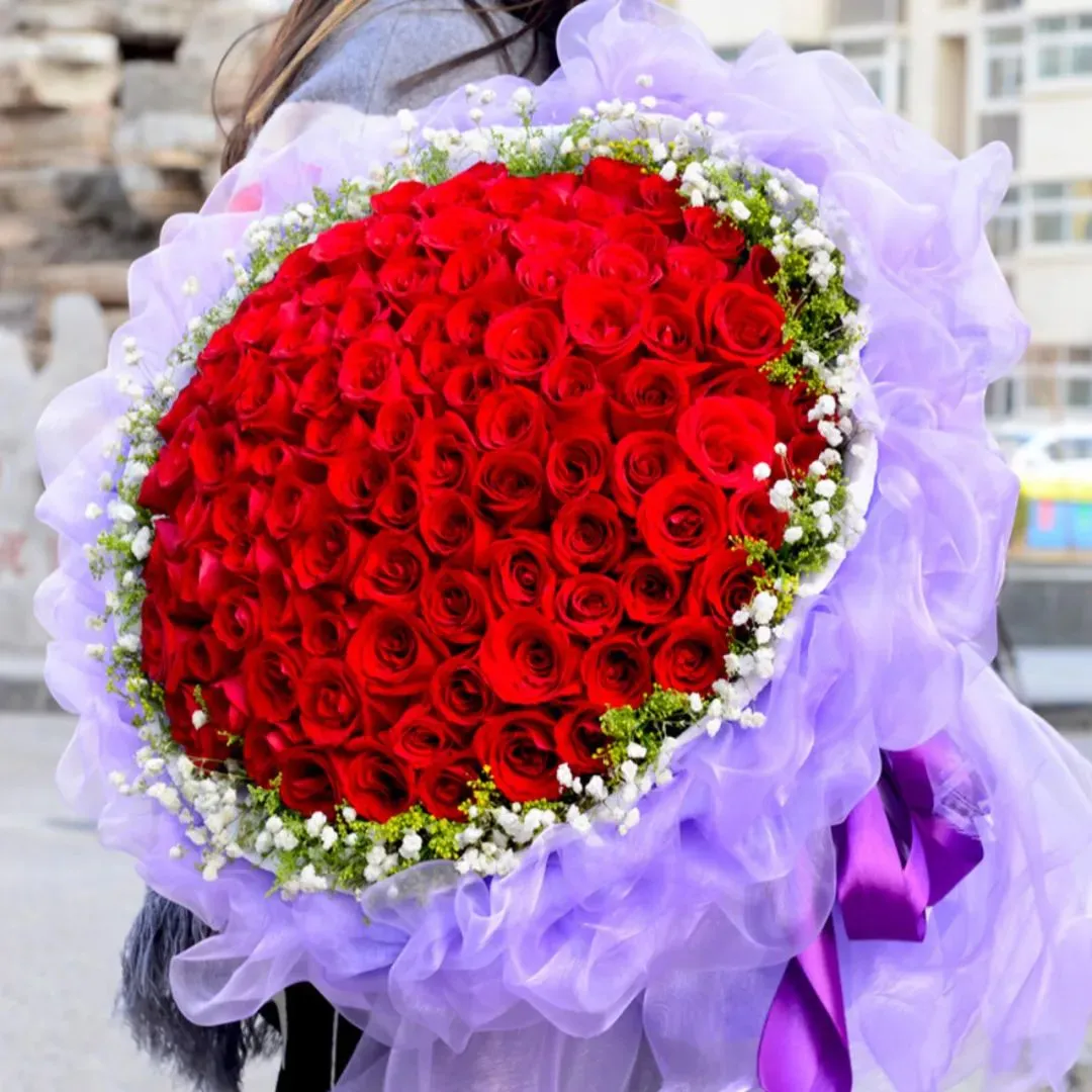 让她知道你会用52朵红玫瑰给她全心的爱。送52朵玫瑰给你所爱的女人,表明她能得到你100%的爱。
