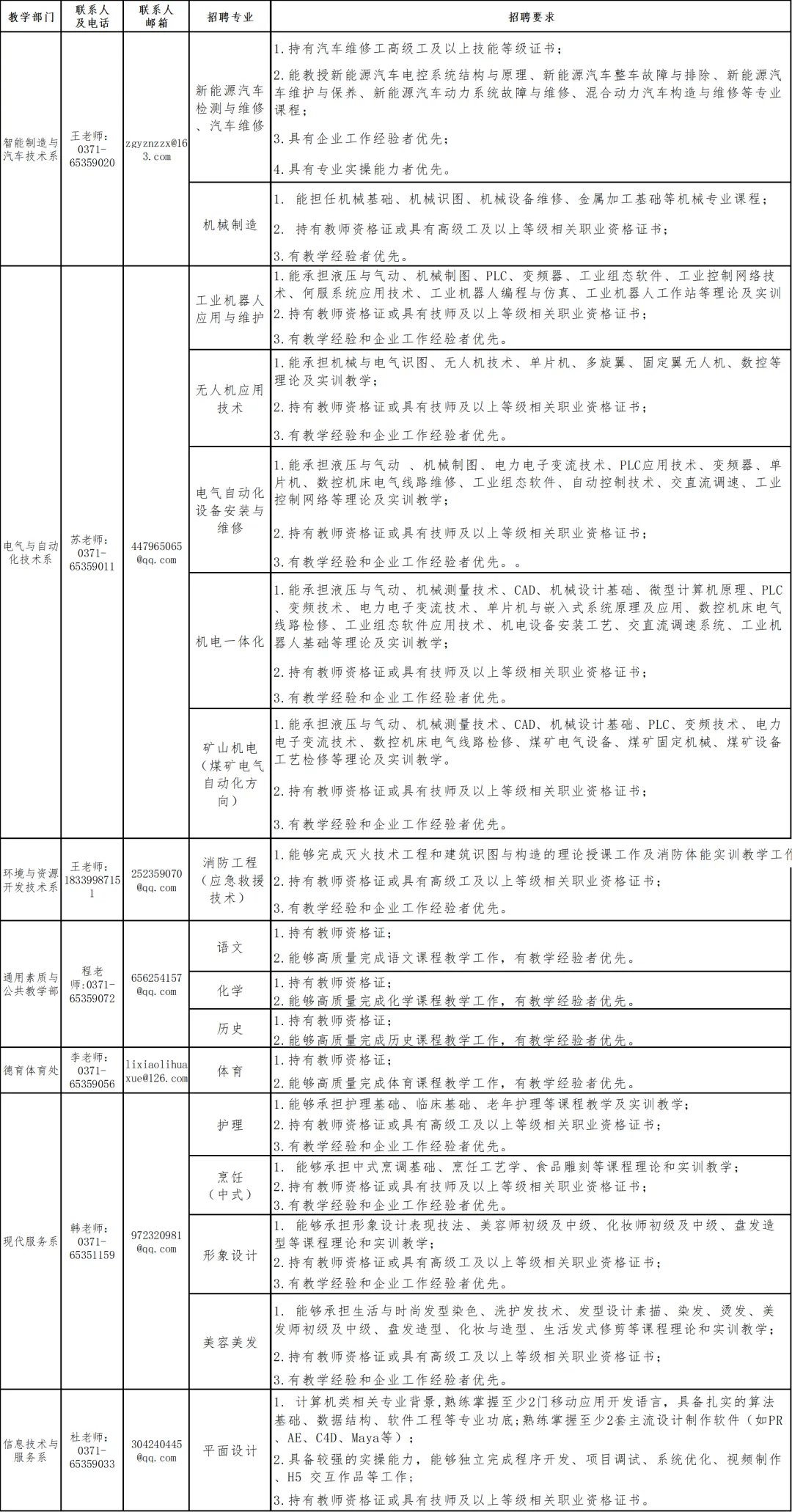 6.具有岗位所需的专业知识和技能条件,应聘者所学专业应与招聘专业相符或相近,有相关学科授课经验者优先,本专业技能水平较高者可适当放宽条件。