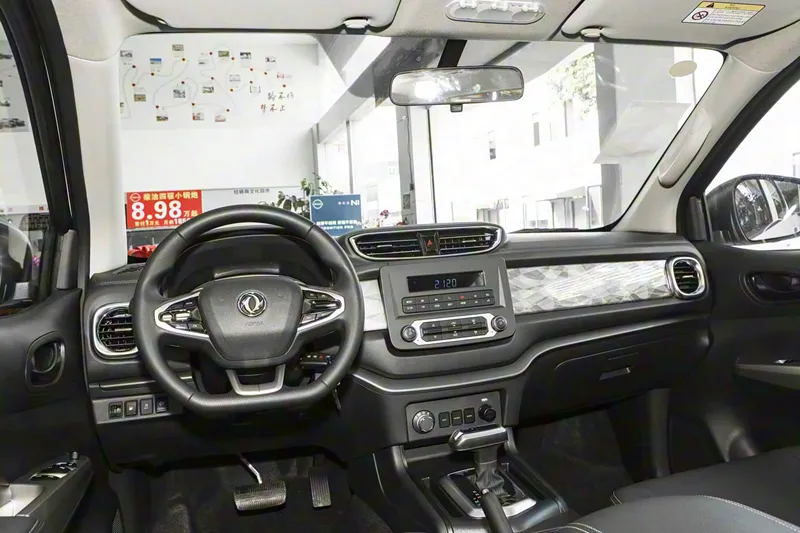 拉开车门,金锐骐的内饰仍然采用了比较传统的设计风格。其中控台区域采用类似于乘用SUV的设计风格,通过多样化的材料进行组合,让商用皮卡也有接近于乘用车的舒适性表现。