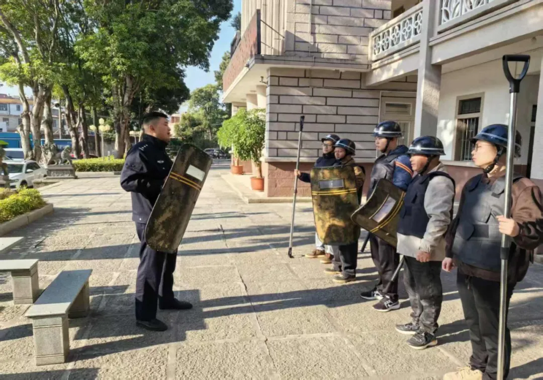 培训现场,派出所民警结合乡镇基层应急处突实际,首先明确了“先护自身、再稳现场、最后处置”的核心原则。针对日常应急中常用的防暴盾牌、钢叉、警棍等器械,民警从握持姿势、防御技巧、协同配合等方面进行分解示范。