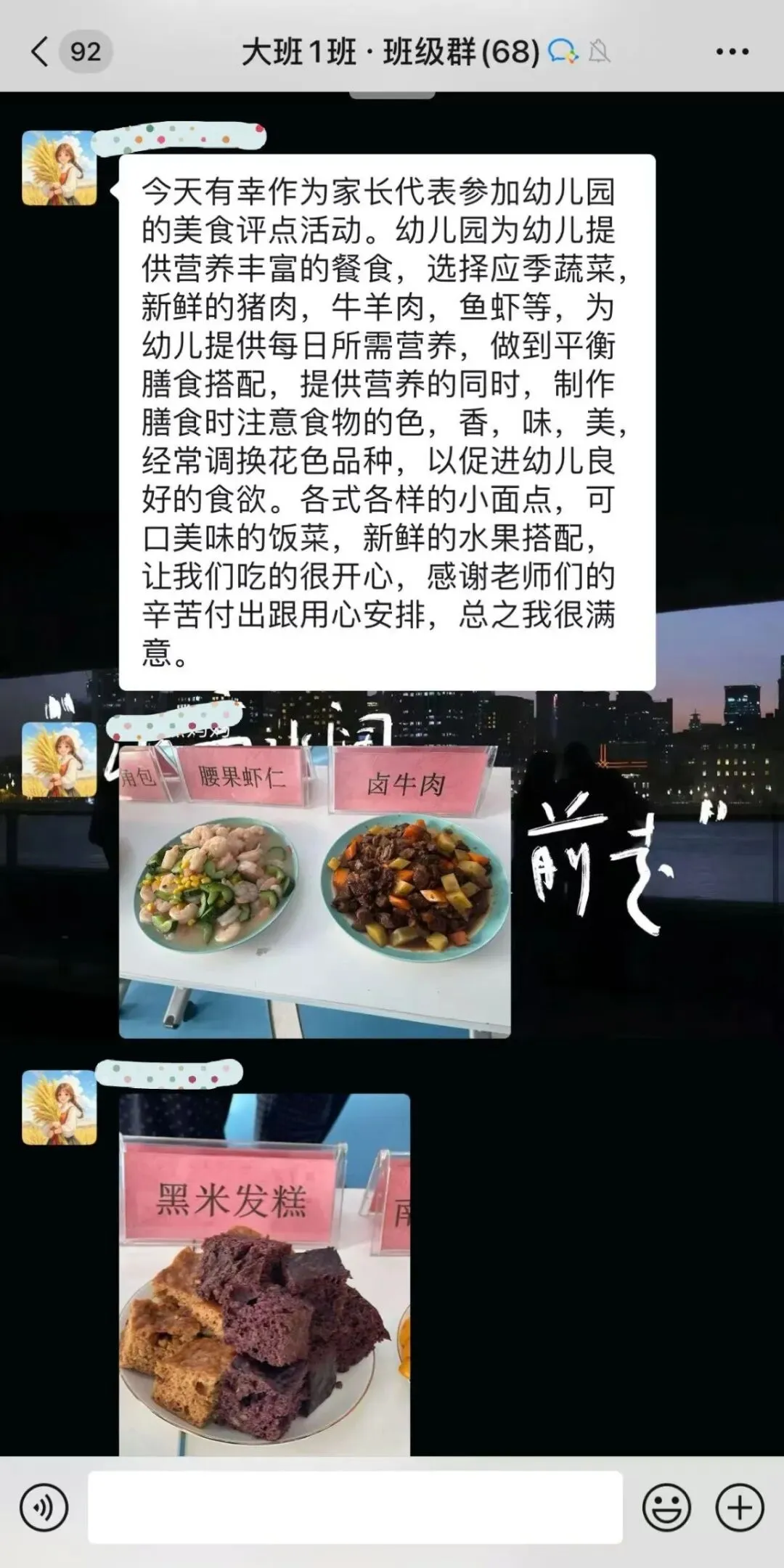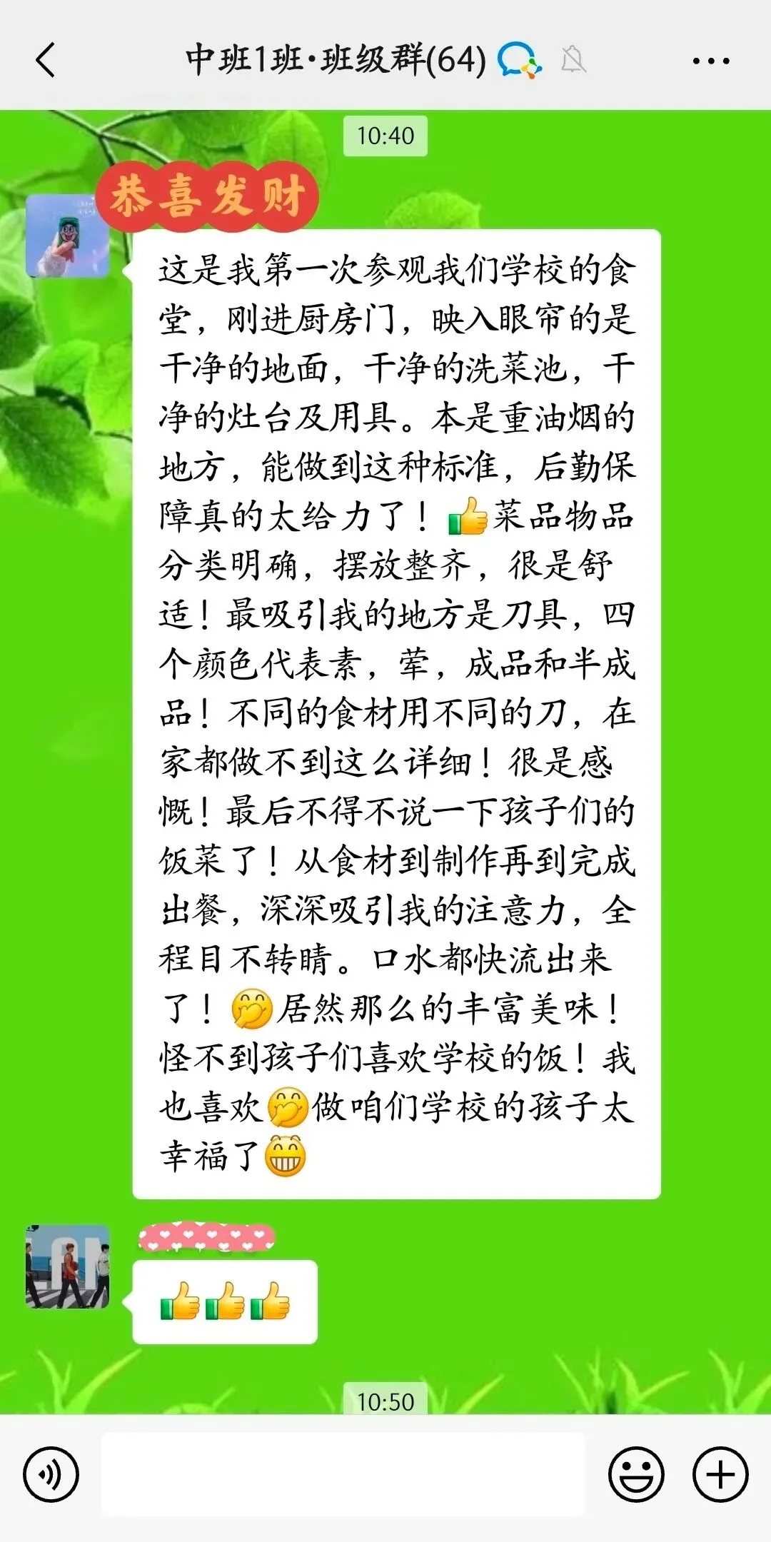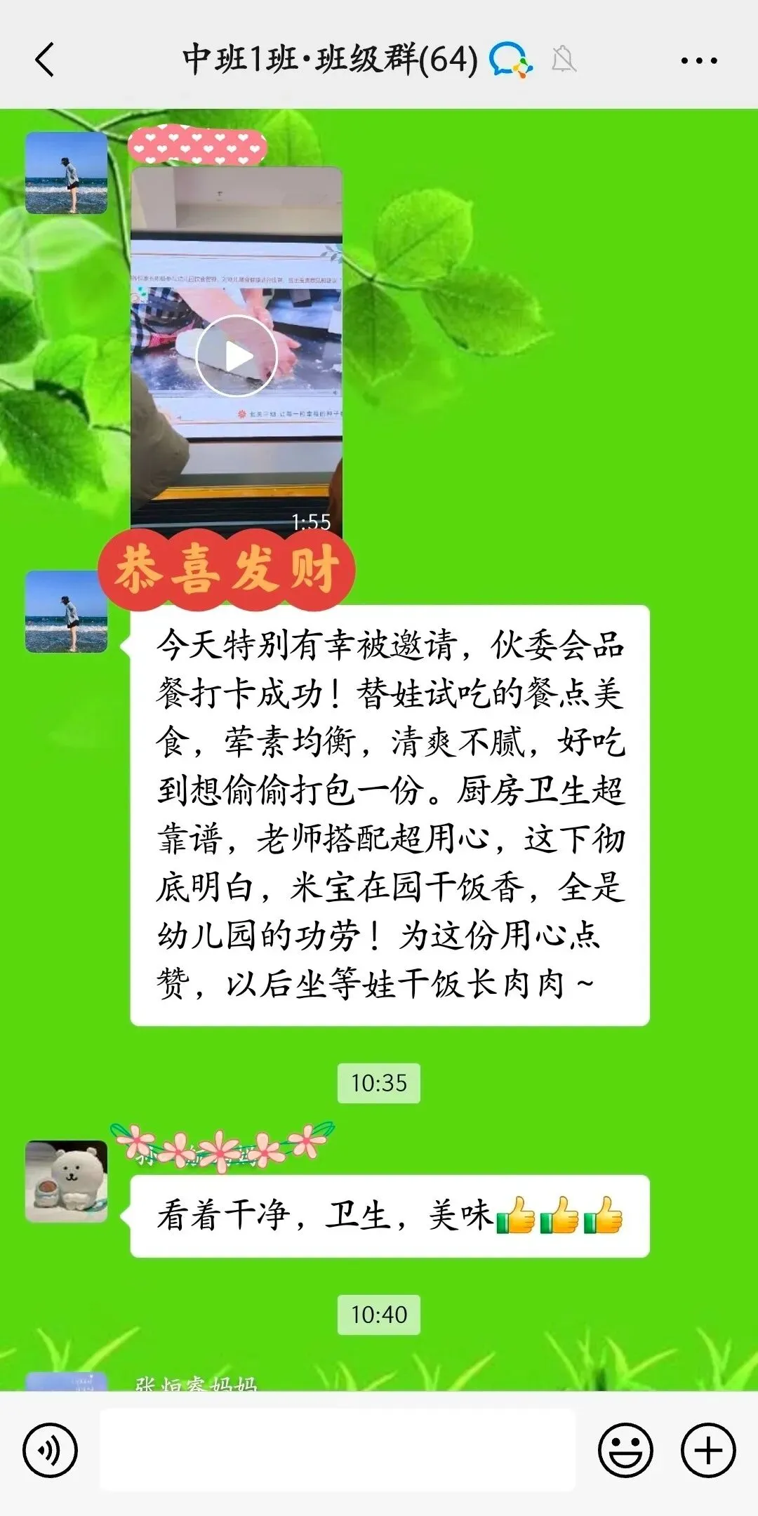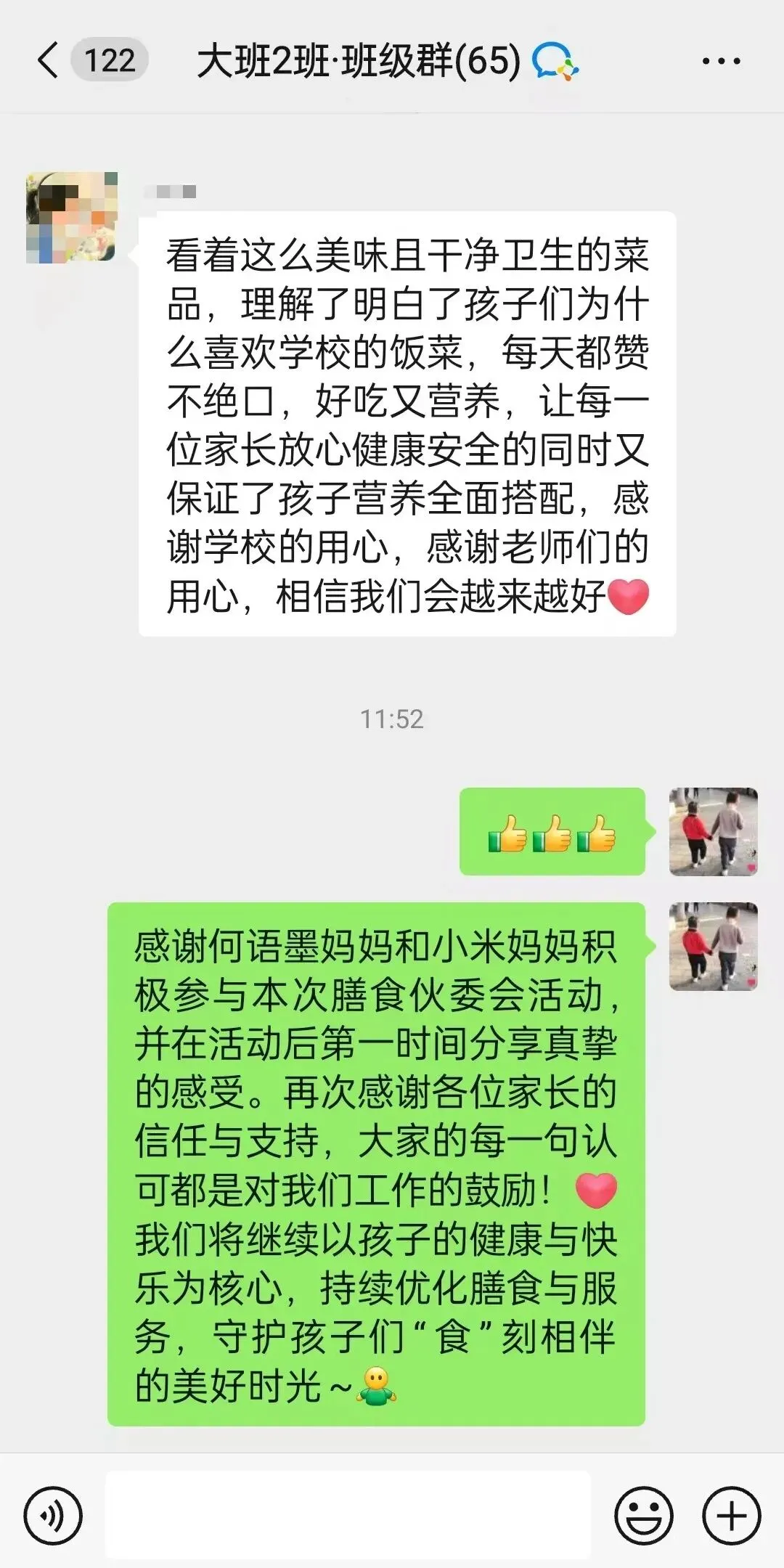活动圆满结束后,家长们第一时间在班级群中分享参与此次伙委会的所见所思、所感所悟。