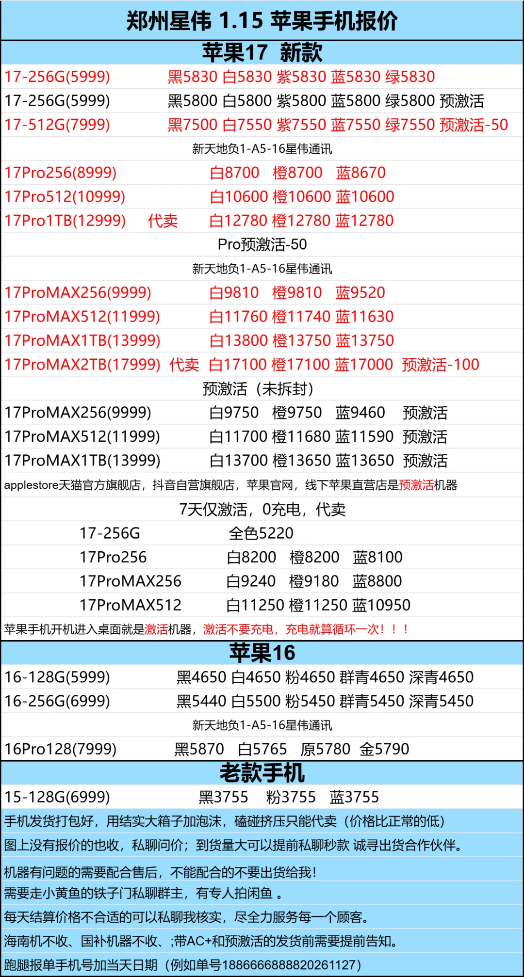 郑州贝哥数码1月15日苹果回收报价更新