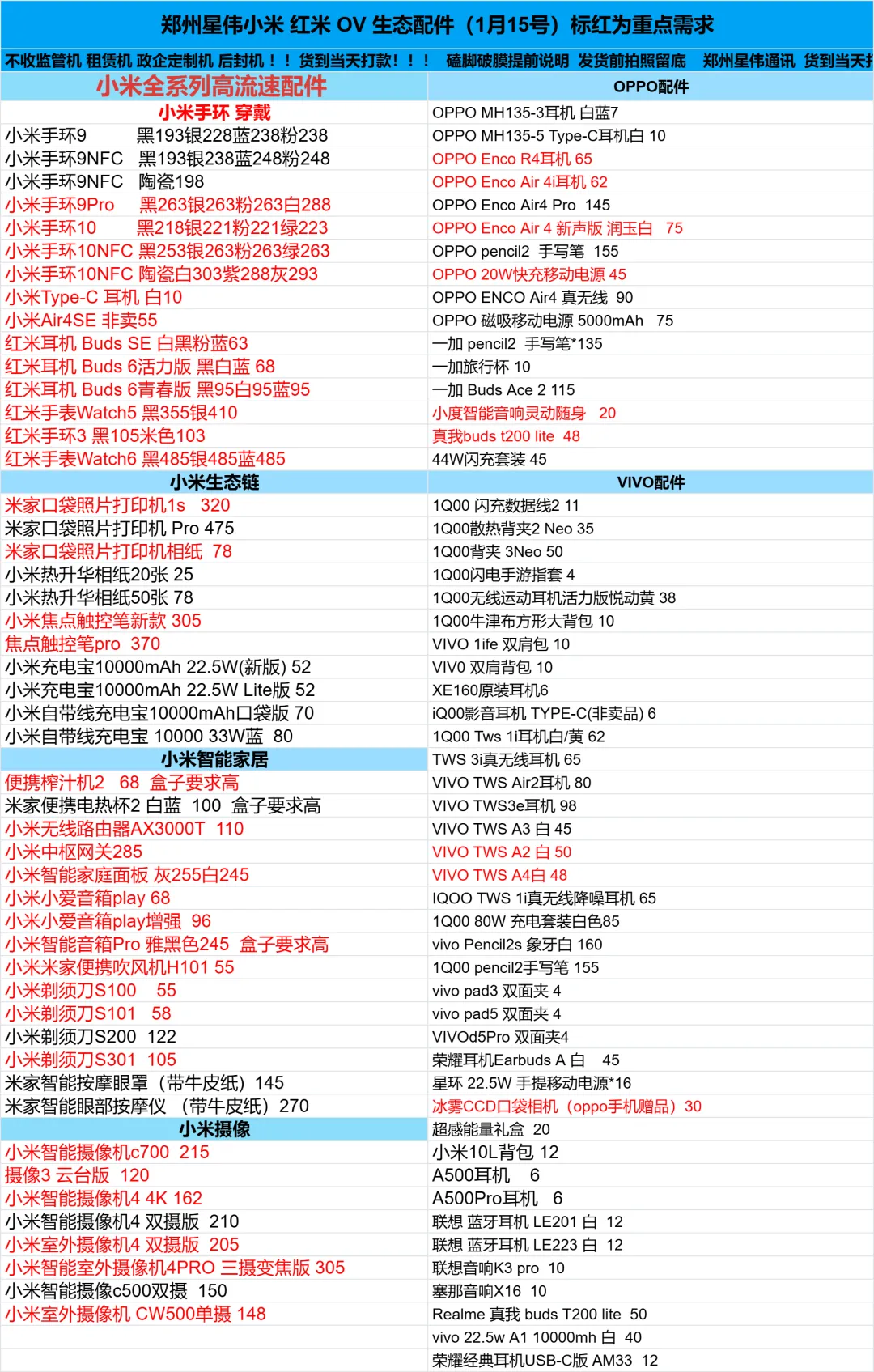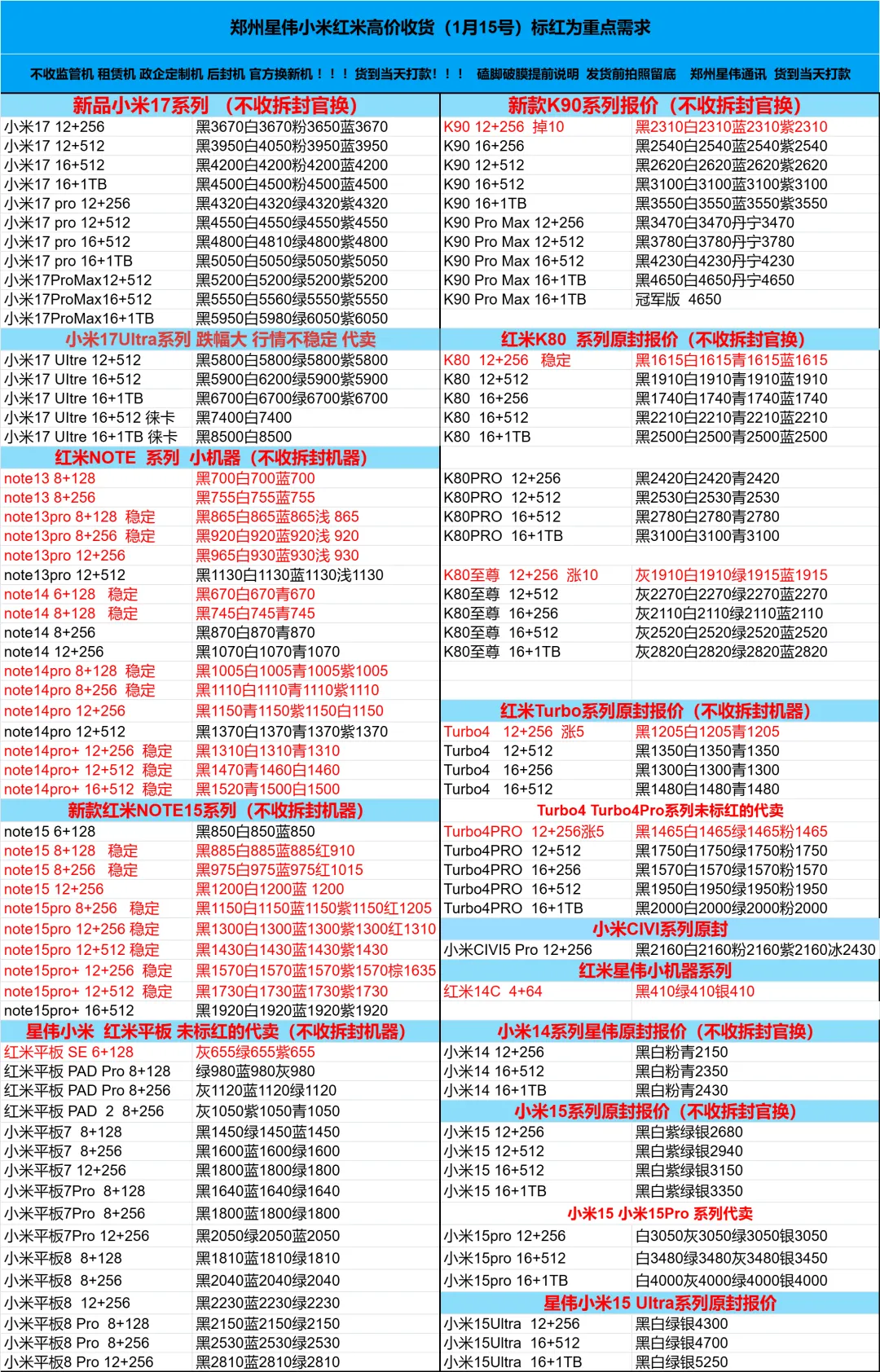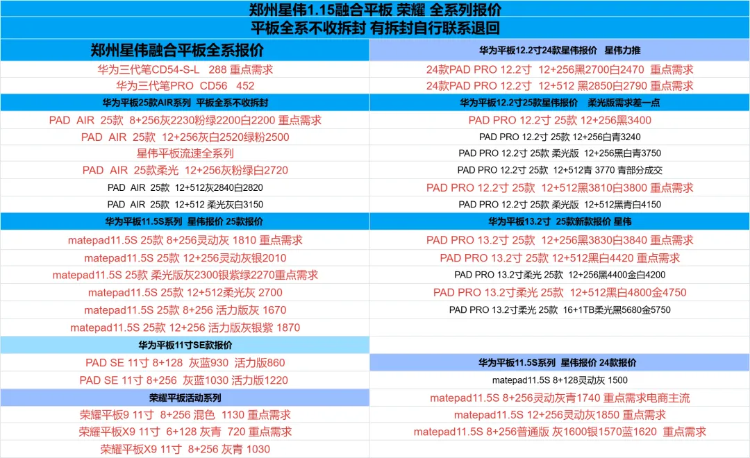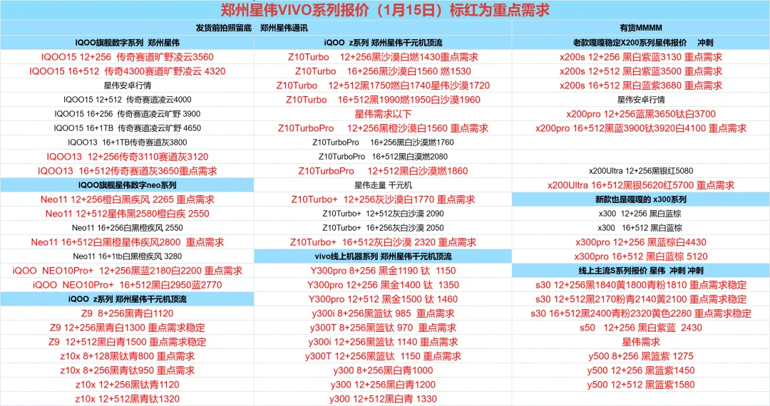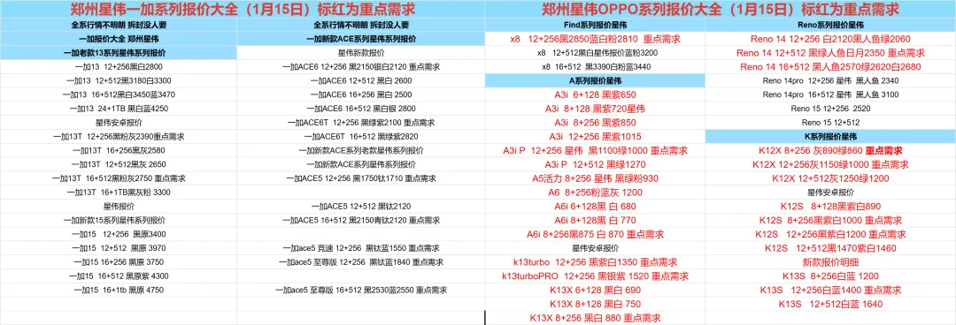 郑州贝哥数码1月15日国产回收报价更新