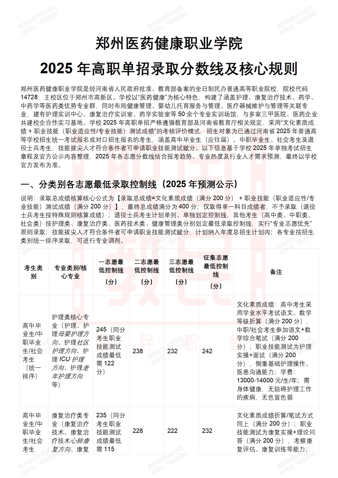 >高职单招 | 郑州医药健康职业学院2025年高职单招录取分数线及单招的同分排序、成绩折算与录取规则