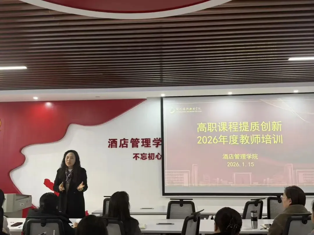 为深化高职教育教学改革,提升教师课程创新能力,助力教师专业成长,2025-2026学年第一学期期末,郑州旅游职业学院酒店管理学院组织开展高职课程体系创新教师培训。1月15日上午,培训活动如期举行,学院全体教师参会,共同汲取教学创新经验,凝聚育人共识。
