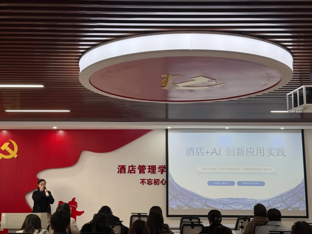 2026年1月15日下午,酒店管理学院召开“酒店+AI 创新应用实践”成果分享会。全院教师参会,由酒店数智化教研室作专题汇报,系统呈现其在推动酒店专业与人工智能技术深度融合、落实“以赛促教、以赛促学”育人理念的探索与成效。