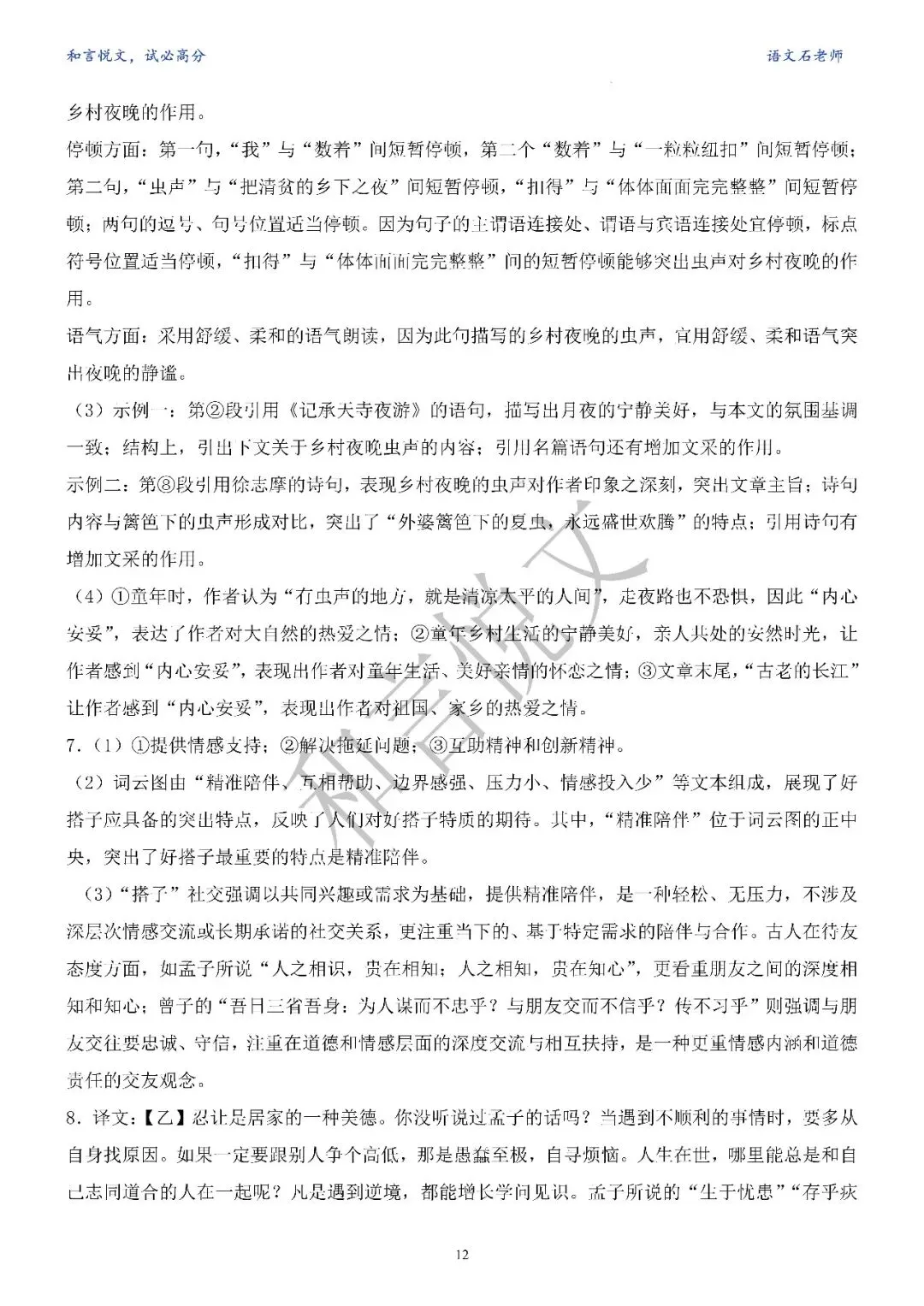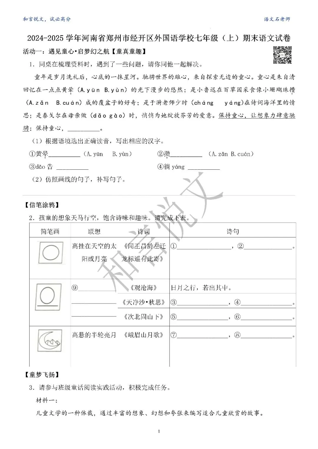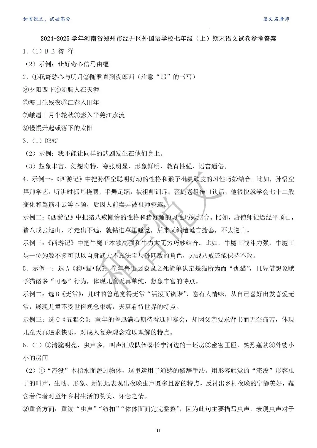 2024-2025学年河南省郑州市经开区外国语学校七年级(上)期末语文试卷