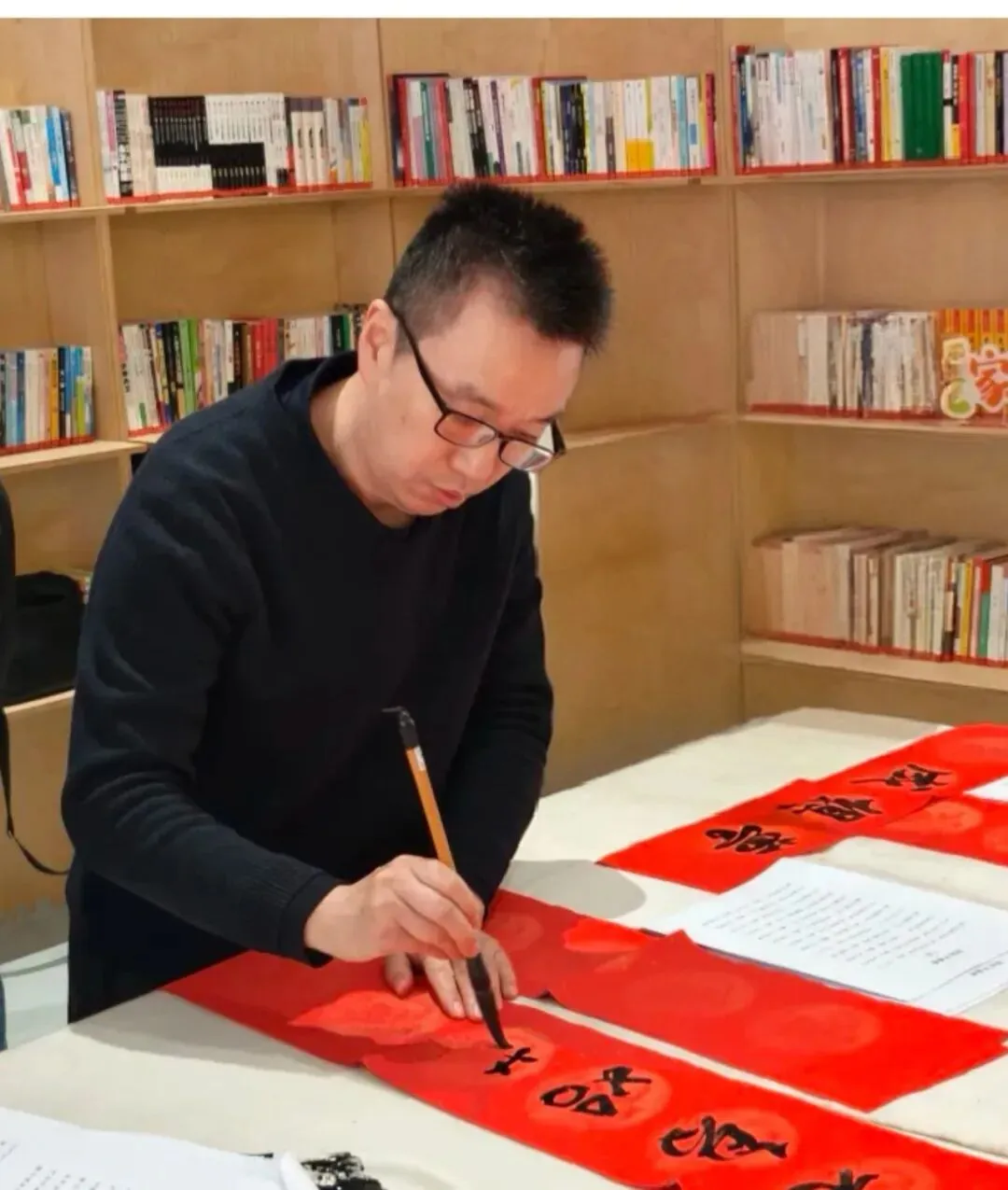 郑州美术学院党委副书记、副校长李亚飞在主持时表示,本次活动既是校地文化交流的深化,也是学校践行“我为群众办实事”的具体实践。老师们以笔为媒、以墨传情,将对群众的关怀、新春的期盼、生活的祝愿倾注于笔端,把最真挚的祝福送到居民手中。学校将继续深化校地合作,发挥学科专业优势,在文化共建、志愿服务等方面开展多元合作,为地方文化繁荣发展贡献高校力量。