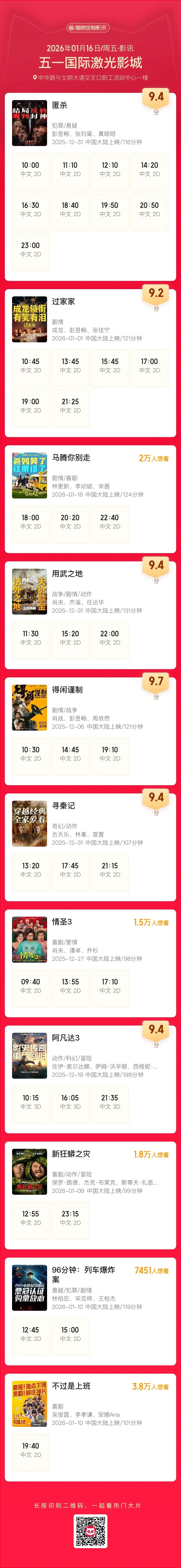 安阳五一影城1月16日影讯