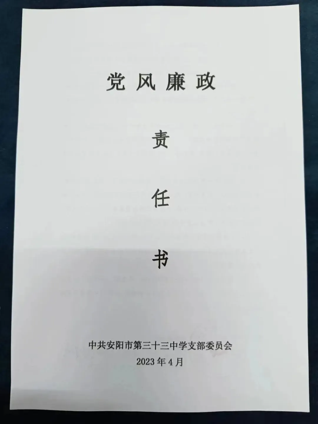 我校党支部要求全体教职工廉洁从教并签订师德师风承诺书,中层以上领导干部签订党风廉政责任书。党支部书记韩雪敏要求管理团队成员深入学习贯彻党的二十大及全国两会精神和习近平新时代中国特色社会主义思想,扎实推进党风廉政建设和反腐败工作,确保中央及各级关于党风廉政建设的决策部署落实到位,认真履行“一岗双责”,“三重一大”事项实行集体决策制度,主管领导要定期分析、研判分管领域及处室廉政风险点,如招生、采购、教辅、校服招标等工作,严守政治纪律和政治规矩,严肃认真开展党内政治生活,严格遵守廉洁从政各项规定,自觉加强廉洁自律。