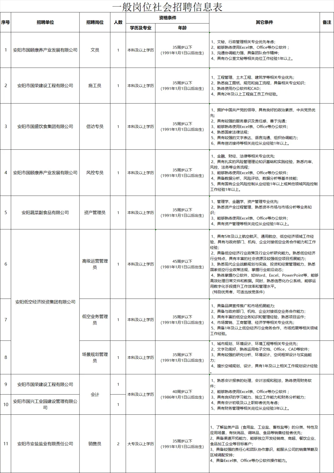 2.招聘有关程序及条件需符合《安阳市财政局关于进一步规范出资(监管)企业人力资源管理工作的通知》(安财国企组织〔2025〕1号)、《中共安阳市国控集团有限公司委员会员工招聘管理意见》等相关要求。