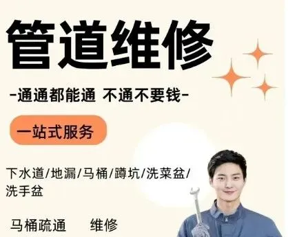 附近专业疏通下水道、管道清洗、马桶疏通、地漏疏通、化粪池清理、高压清洗、水管维修安装等服务 | 10分钟上门 | 30元起 | 不通不收费我们提供24小时同城上门疏通服务,包括下水道疏通、管道清洗、马桶疏通等。师傅经验丰富、上门迅速、价格透明,服务范围涵盖:疏通地漏、抽化粪池、维修水管、安装下水管道、高压清洗等。10分钟极速上门,50元起实惠服务,全天候响应紧急堵塞问题。