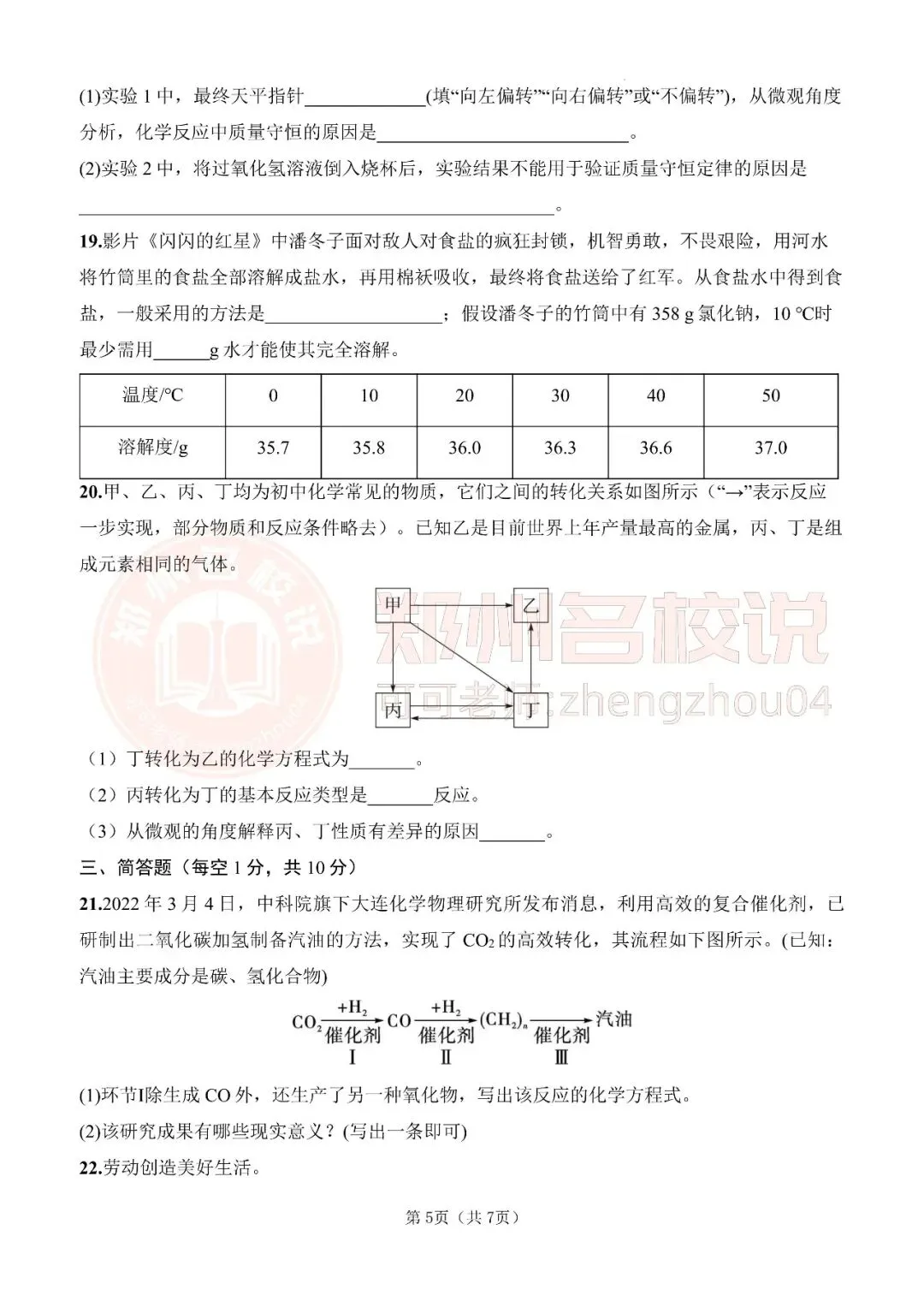 郑州市九年级期末化学模拟试卷2025-2026上(免费分享)