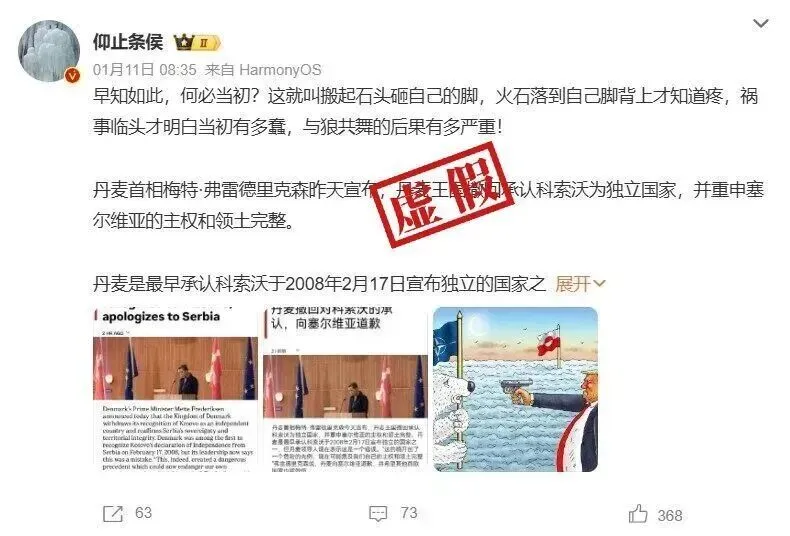 网传图片源自一位塞尔维亚裔加拿大籍电影导演,他在X平台发布该图片后不久称,“这是一则虚构的新闻报道,旨在说明丹麦应该采取的做法。”