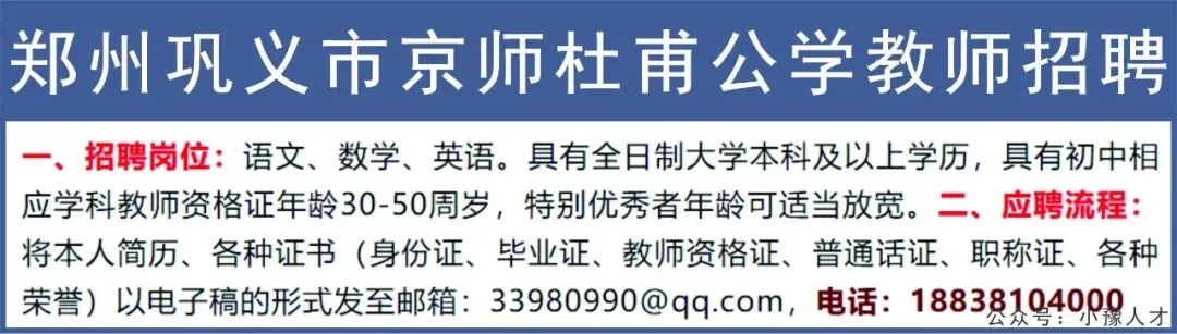 >郑州巩义市京师杜甫公学教师招聘