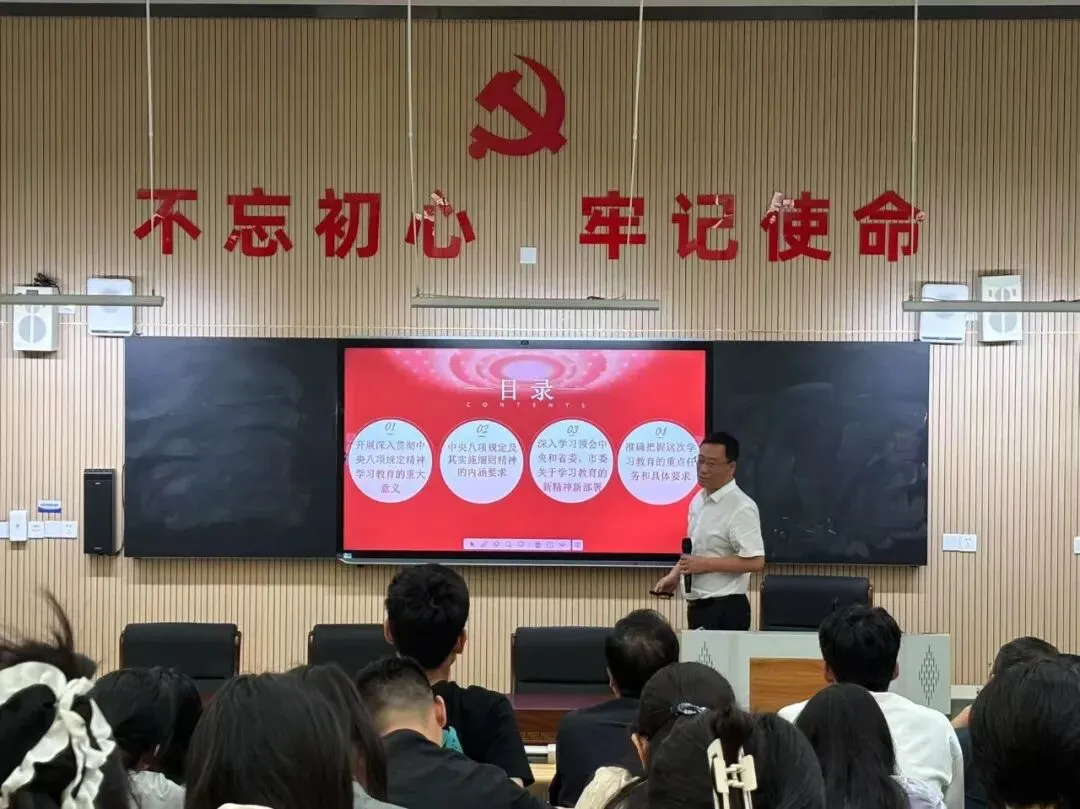 回望 2025,我们以党建为舵、以育人为帆,在教育改革浪潮中勇毅前行。党建引领强根基,组织优化与党性淬炼双轮驱动,让思政“生命线”贯穿办学全程;师者匠心育桃李,荣誉师资深耕教研,以“躬耕教坛”之志点亮学子成长路;五育并举润无声,“大思政课”创新与体艺夺金相映,让核心价值观根植心灵;协同育人聚合力,研学拓界与家校联动凝心,将育人使命熔铸每份硕果。展望未来,我们将以习近平新时代中国特色社会主义思想为指引,深耕立德树人沃土,笃行担当。愿携手共进,续写学校高质量发展新篇!学校党组织始终把党的政治建设摆在首位,以习近平新时代中国特色社会主义思想为指导,深入学习贯彻党的二十大精神及习近平总书记关于教育的重要论述,通过健全“第一议题”制度、深化理论学习与实践结合,推动党建工作与办学治校、教书育人深度融合,确保各项决策部署落地见效。持续涵养风清气正的校园政治生态,将中央八项规定精神学习教育贯穿作风建设全过程,结合专项整治,健全内控机制,制定了26项相关制度。党组织战斗堡垒作用和党员先锋模范作用,为学校高质量发展提供坚强保障。