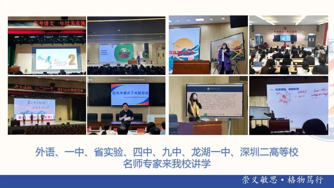 学校以教科研为抓手、以平台建设为支撑,全面推进师资队伍提质增效。学校全年成功立项省级课题2项、市级课题3项,顺利结项3项,以科研创新为引擎,驱动教学改革向纵深推进。师资素养稳步提升,1名教师获评省优秀教师,3名教师荣获2024年度事业单位工作人员个人嘉奖;4名教师在省市级优质课评选中崭露头角,9名教师获评中国中学生作文大赛优秀辅导教师,指导40名学生斩获佳绩。学校搭建多元成长平台,推动30名青年教师完成师徒结对;组织开展“新师入伍汇报课”22节、“优秀教师示范课”9节,邀请省、市级专家名师进校开展专题讲座9次,助力青年教师在名师引领与专业赋能中加速成长。凭借扎实的师资建设成效,学校获评年度继续教育考评优秀单位,为教育教学高质量发展筑牢人才根基。