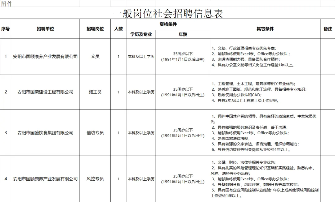 安阳国企单位公开招聘12名工作人员!大专可报!