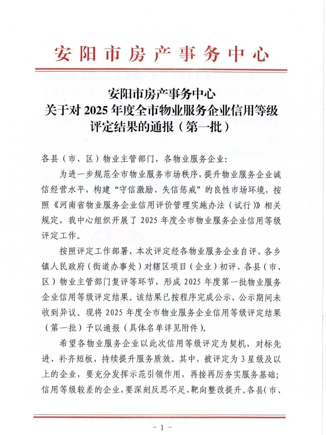 >安阳市丨通报2025年度全市物业服务企业信用等级评定结果