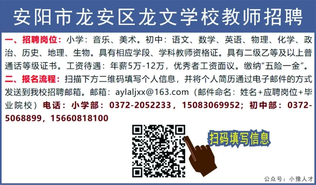 安阳市龙安区龙文学校教师招聘