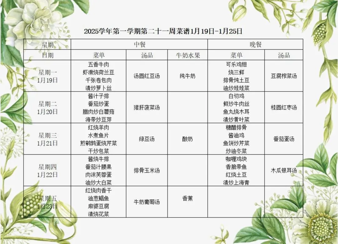 >安阳实验中学2025年秋季第二十一周学生菜谱