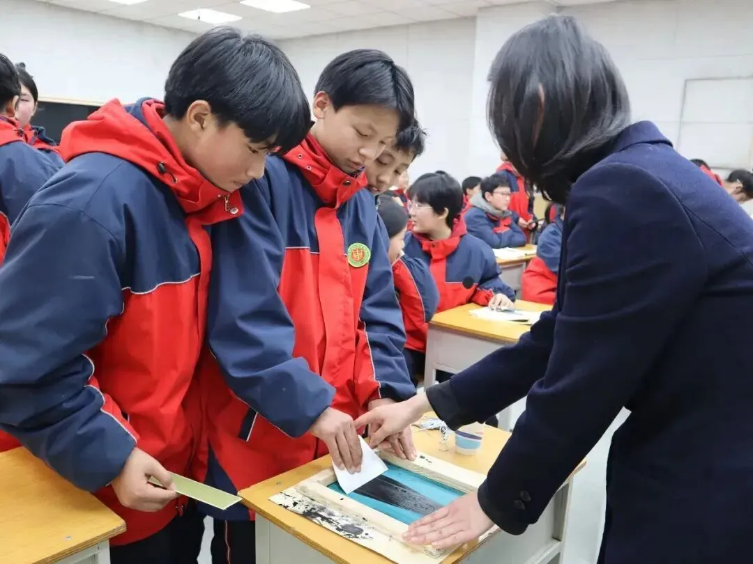 动手体验环节,学生们参与了丝网书签制作。大家将印有“大邑商”等甲骨文字的丝网模板固定在书签上,用刮板将颜料均匀刮涂过网孔,提起丝网后,清晰的甲骨文图案便印于书签之上,每位同学都收获了兼具文化韵味与实用价值的专属作品。
