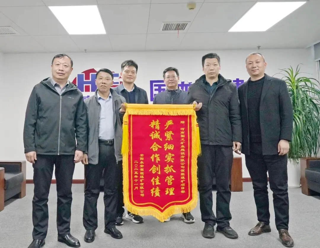 1月16日,贺驼煤矿总经理赵亮一行到访国龙矿建(原煤炭部八十四工程处),送来书有“严谨细实抓管理,精诚合作创佳绩 ”的锦旗,对施工团队2025年安全、高效完成各项施工任务给与高度赞扬和感谢。并与国龙矿建总经理、副董事长谢涛座谈。贺驼煤矿常务副总经理、总工程师韩增辉,国龙矿建总经理助理郝勇军出席座谈。