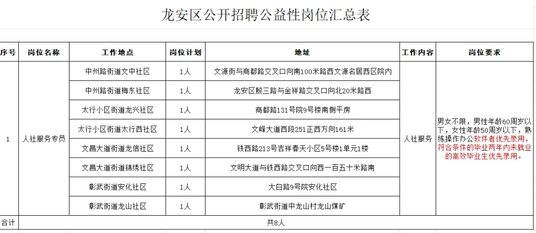 龙安区招考:8人