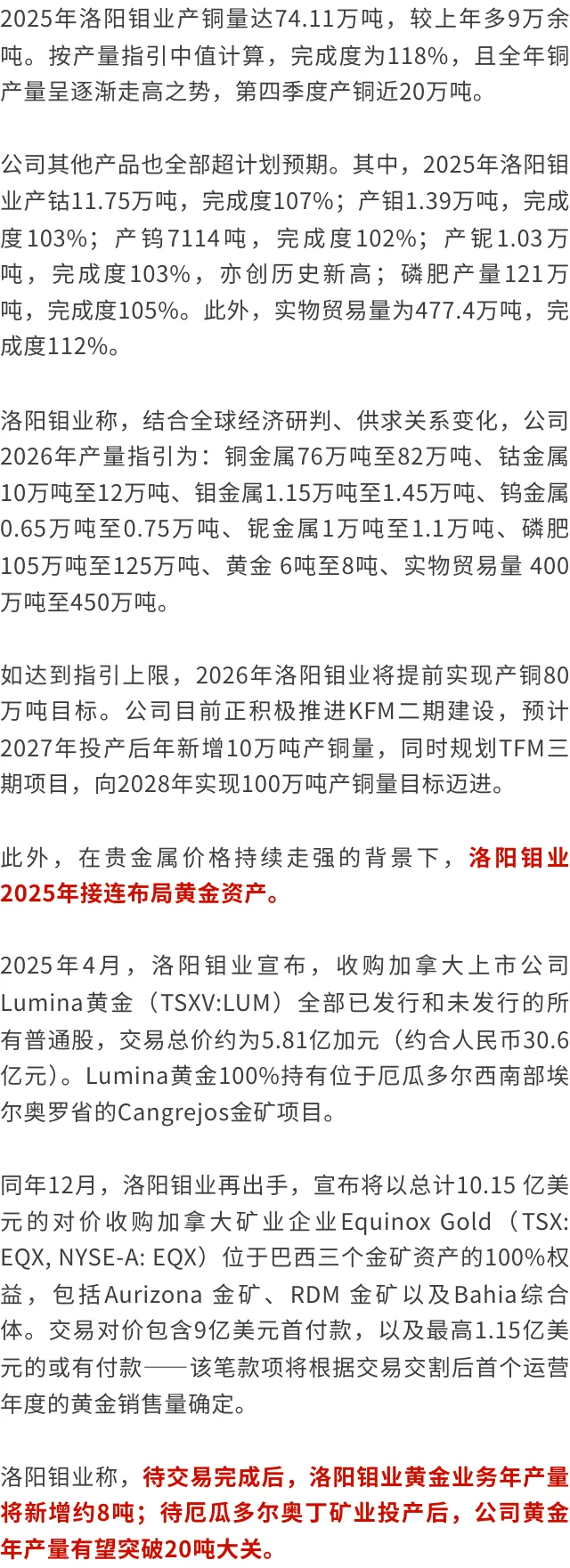 值得关注的是,这是洛阳钼业盈利首次进入200亿元区间,同时实现连续五年业绩破纪录,持续刷新历史峰值。洛阳钼业表示,2025年业绩同比大幅上升的原因系公司主要产品量价齐升、运营成本有效管控。大雪!暴雪!洛阳发布重要天气报告,温馨提示:寒潮来袭,请大家注意保暖~
