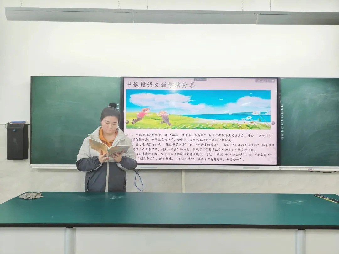 青年教师们以课本为媒、以课堂为台,将低年级语文教学的生动性、趣味性与知识性巧妙融合。在说课展示中,大家深挖文本内涵,巧思教学设计;在课文朗读中,大家深耕情感表达,细琢语音语调。一言一行皆彰育人初心。他们在展示中打磨技艺,在交流中拓宽思路,在竞技中沉淀成长。
