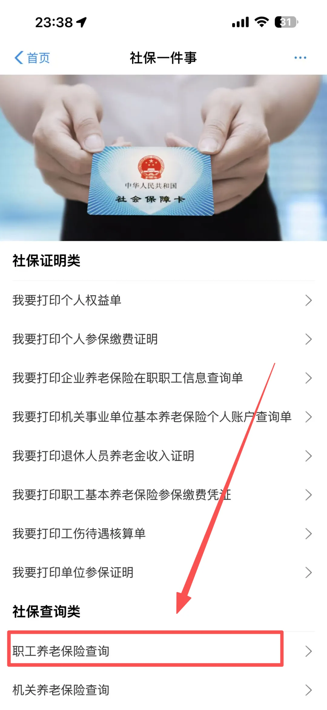 在首页选择【社保】,点击进入后选择【职工养老保险查询】,扫脸进入后即可查询缴费明细情况