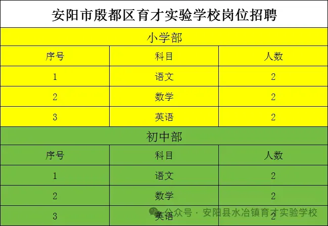 <<< 安阳市殷都区育才实验学校教师招聘>>>