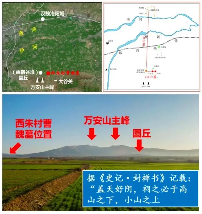 西朱村处于圜丘遗址与汉魏洛阳故城太极殿之间的南北轴线上,向北约18公里就是汉魏洛阳故城,向南则对应着万安山两座主峰,颇有“表山为阙”之势。