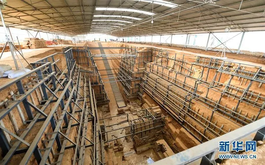 ▲一号墓发掘现场全景。图源:大河报。摄影:孙贝。