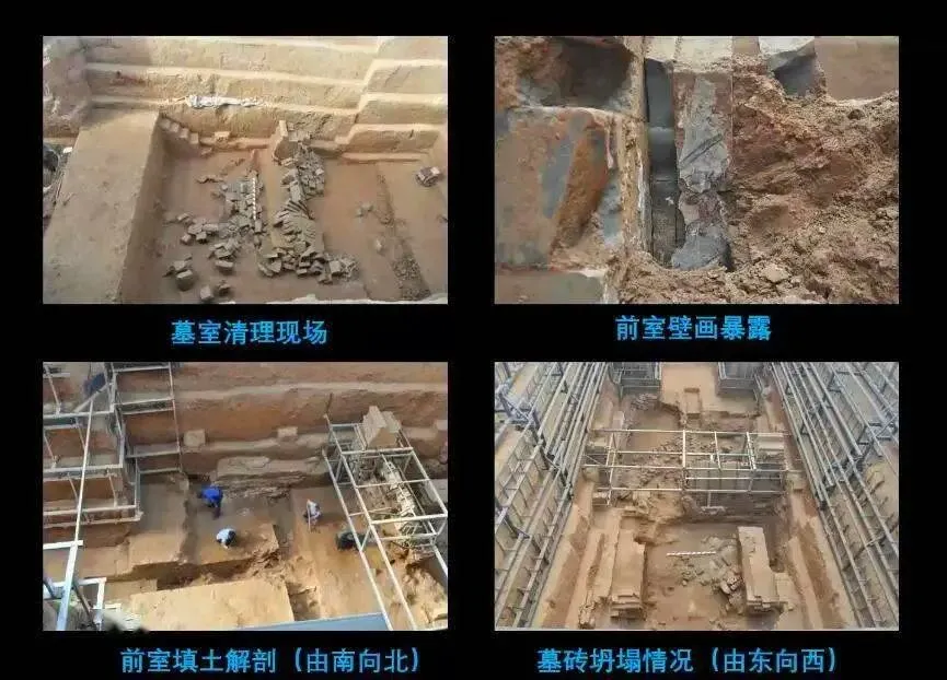该墓葬平面呈甲字形,有七层台阶,这是曹魏时期高等级贵族墓葬的特点。墓葬盗扰严重,甚至大部分墓砖都已被盗走。根据盗洞判断,该墓葬早在宋代就已被盗。