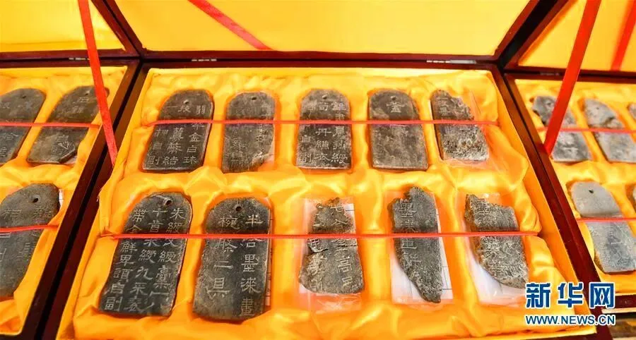 ▲出土大量铭刻石牌(石楬)。图源:新华网。