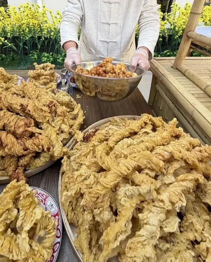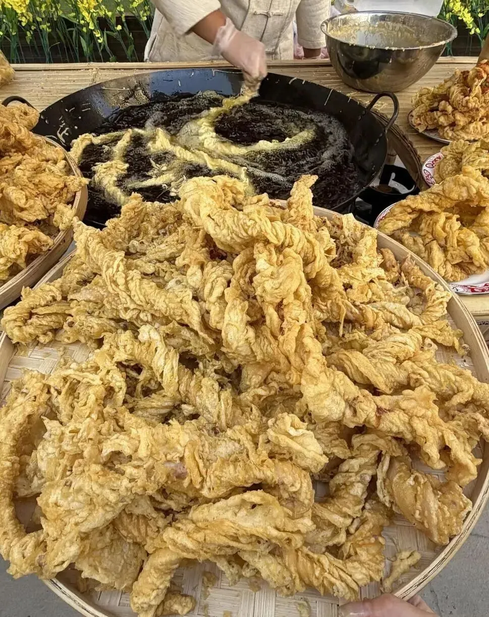 外皮炸的焦香焦香的 , 那个香味飘出来 , 真的顶不住。
