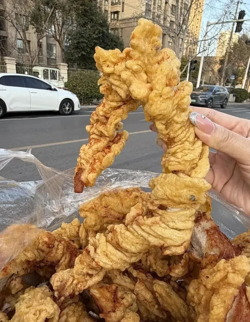 我必须得说 , 刚出锅那会儿是真的香到离谱 , 热乎乎的 , 外酥里嫩 , 我站在摊子边上吃完的 , 根本等不到拿回去。